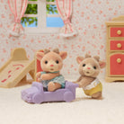 Reindeer Twins by Sylvanian Families. Introducing the baby Reindeer twins, Ollie and Ginger Snowdrift. Their antlers may not be as big as their parents just yet but that makes them even more adorable. Ollie Snowdrift is a baby who simply loves cookies and begs for them every day. Ginger Snowdrift loves giving gifts and wraps everything in gift bags ... even toys and snacks! Each figure can turn their head and either Ollie or Ginger are able to ride in the pushcart which can also be attached to other carts in the range for extra play value.