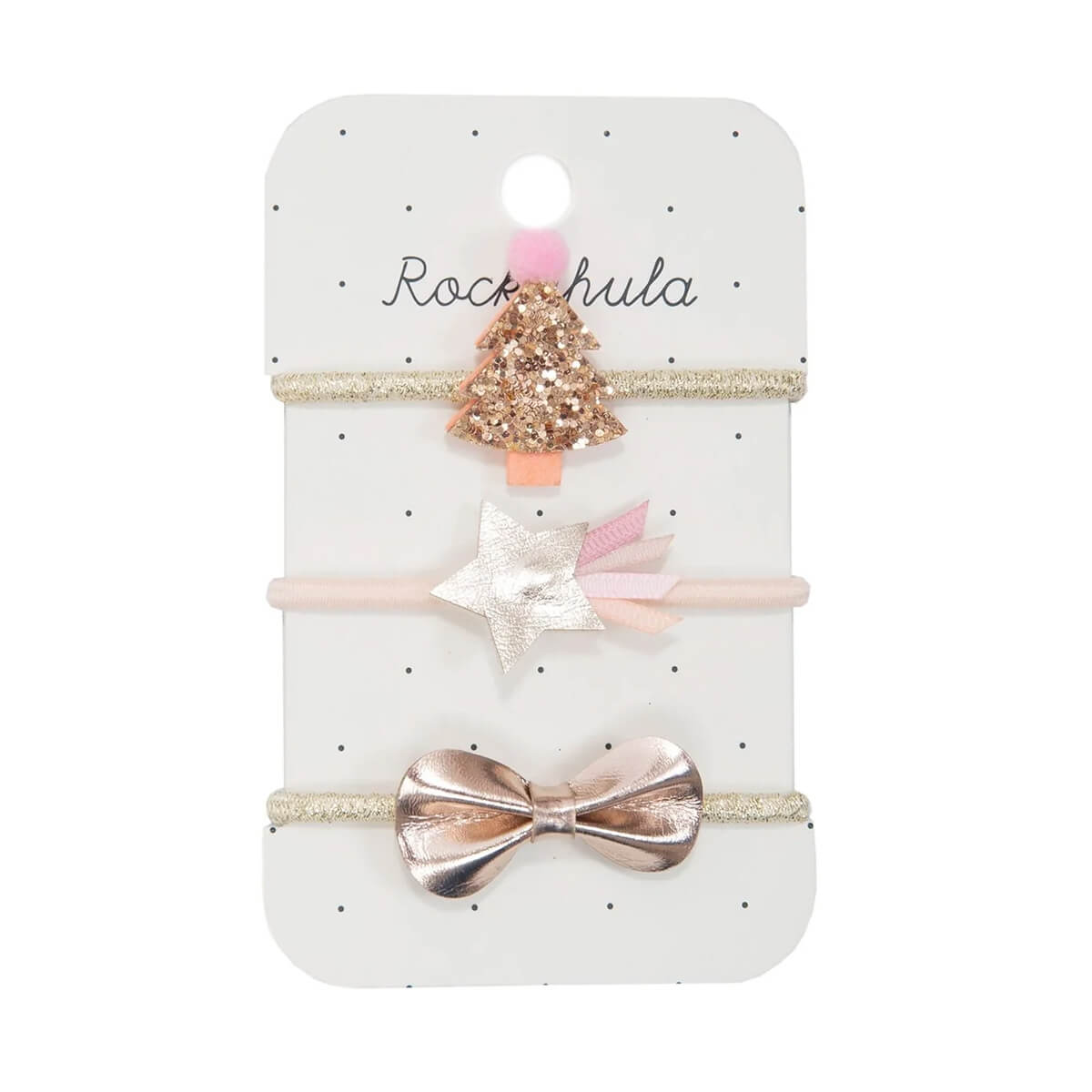 Rose Gold Christmas tree set of ponies by Rockahula Kids. Glisten your way through the Christmas season in these sweet Christmas ponies!