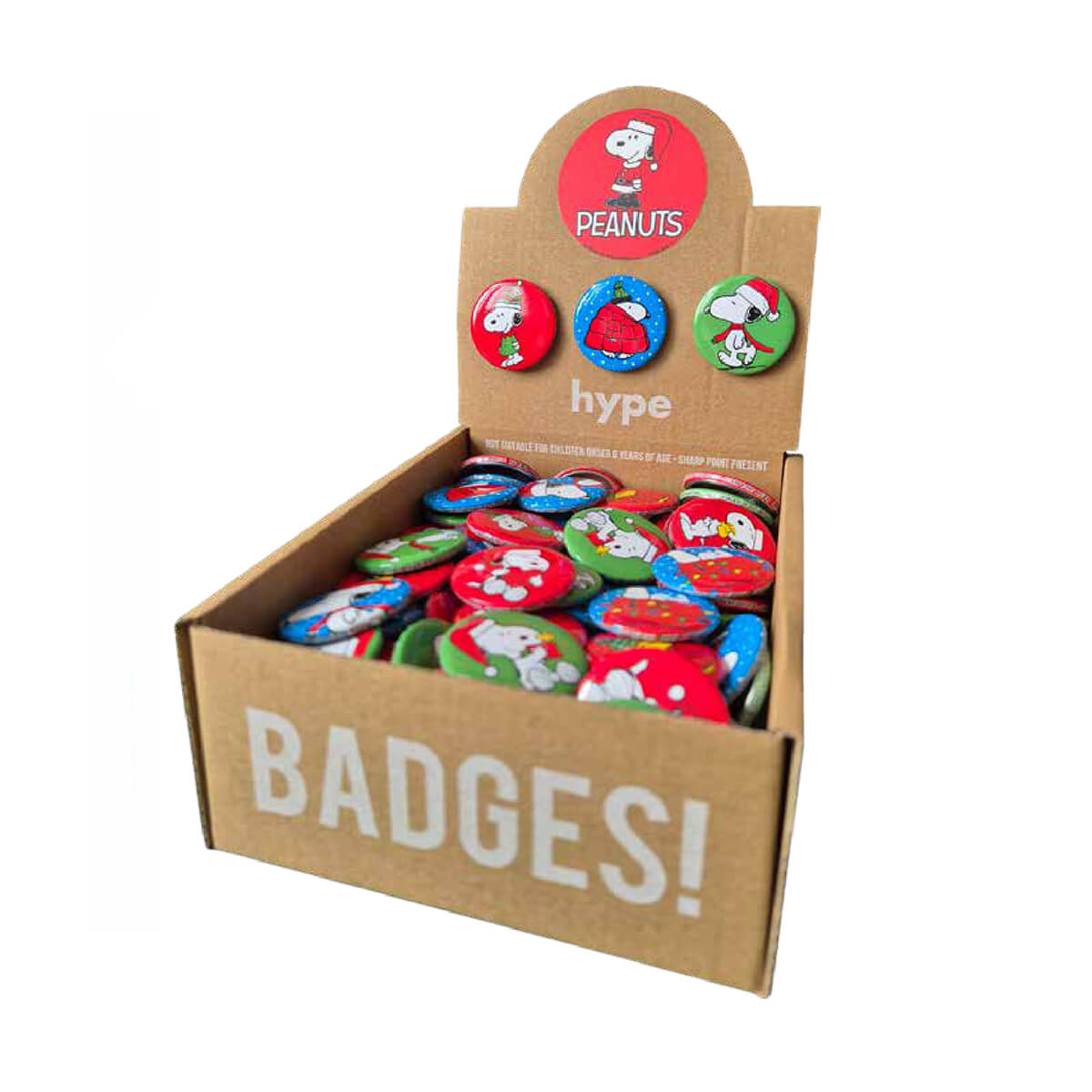 Snoopy Christmas assorted button badges by Hype Card. Features an illustration by Charles Schulz.