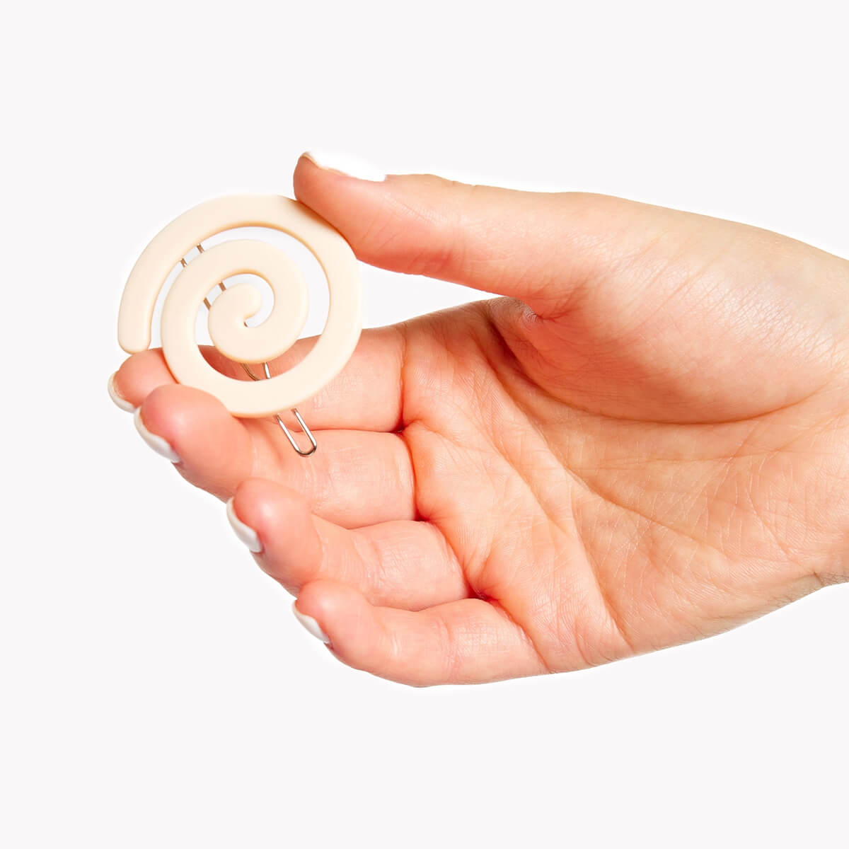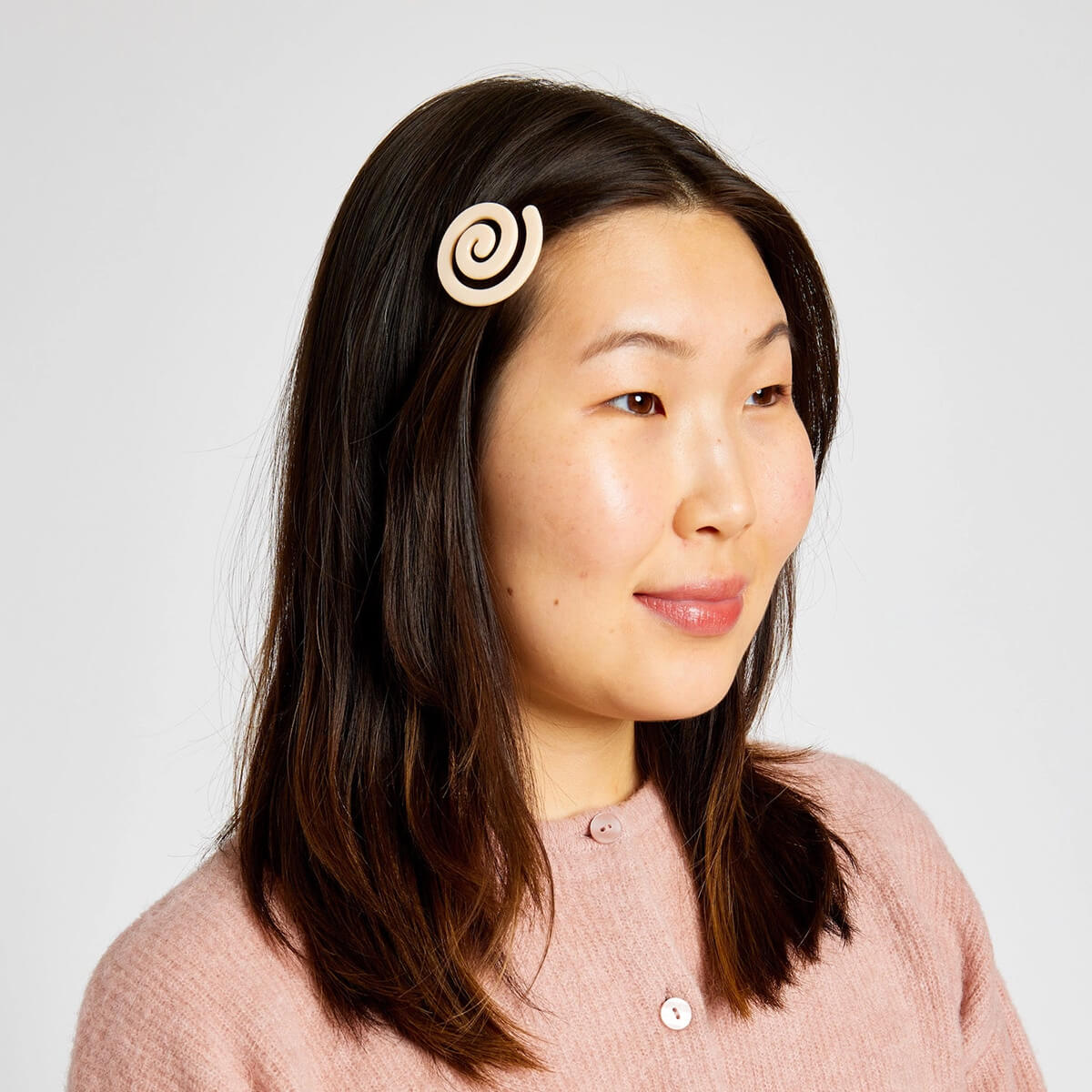 Spiral Hair Clip by Chunks. A simple pop of swirl. This ball-and-clasp clip is perfect for all hair types and textures. Perfect for holding back bangs or adding a decorative pop to any hair style.