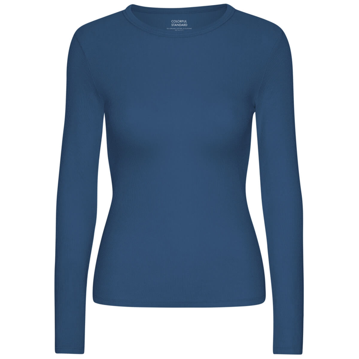 Women's Rib Long Sleeve T-Shirt by Colorful Standard. Designed with versatility, the Rib-Knitted Organic long-sleeve t-shirt features a slim fit that effortlessly shapes and supports various body types. The inherent stretch in the rib-knit fabric provides a form-fitting yet comfortable profile, making it an ideal choice for both casual and semi-formal occasions.