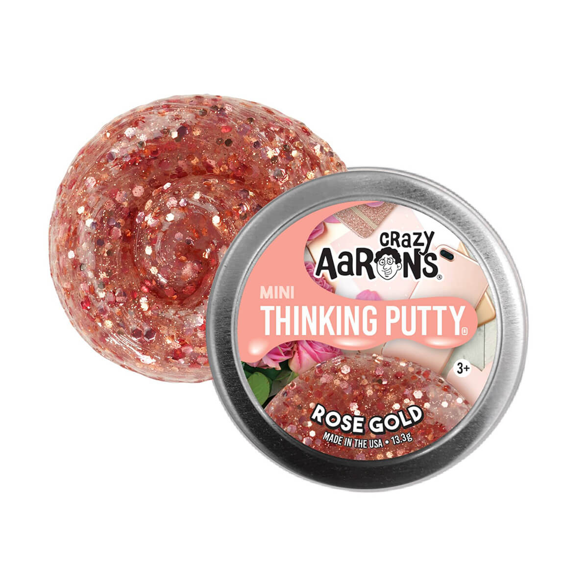 Rose Gold Mini Thinking Putty by Crazy Aarons. This lustrous rose gold Thinking Putty® is the definition of style, elegance, and beauty! Stretch it, bounce it, pop it, tear it, and sculpt it!