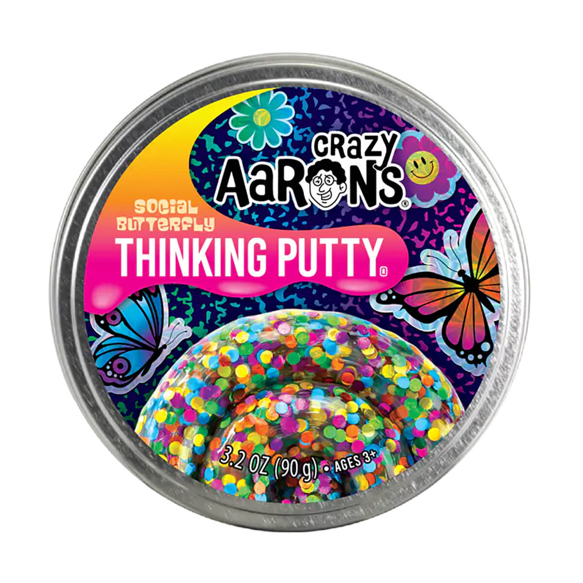 Social Butterfly Trendsetters Thinking Putty by Crazy Aarons. Whether you’re a self-described social butterfly or a wallflower, this lively rainbow confetti putty will get the party started. Clear putty with multicolour sparkly glitter. Stretchable and sculptable with a soft texture.