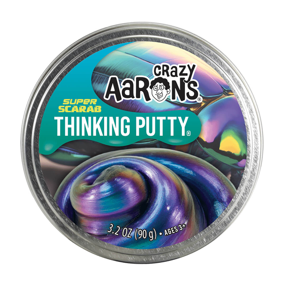 Super Scarab Color Shifting Thinking Putty by Crazy Aarons. The ancient Egyptians were amazed by the scarab beetle. Its beautiful, colour-shifting exoskeleton — which mirrors light in tones of purple, blue, red, and copper — appeared magical and beyond the powers of man. Often used in Egyptian art and religion, the scarab symbolized the restoration of life and was used for amulets, talismans, and jewelry. Super Scarab Thinking Putty® is a modern interpretation of this colorful icon that's sure to leave you as spellbound as its namesake. You can stretch it, bounce it, pop it, tear it, and sculpt it!