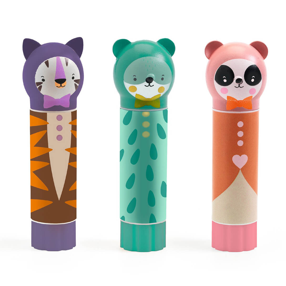 Animal Glue Sticks by Djeco. Funny animal-shaped glue tubes available in three different designs a tiger, bear and a panda!
