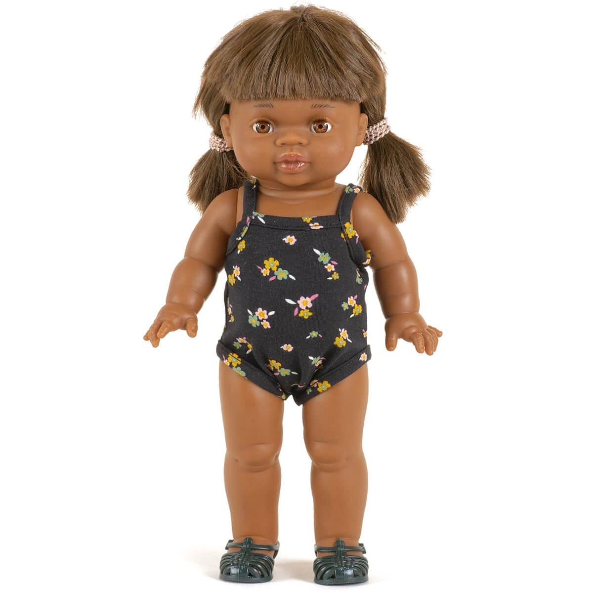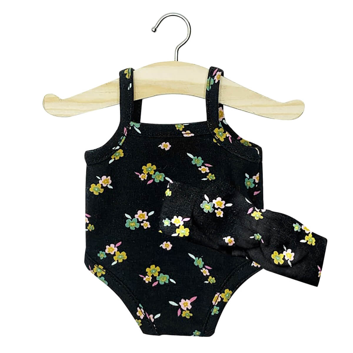 Petite Fleurs Sleeveless Bodysuit and Headband Outfit (34cm Doll) in Black by Minikane