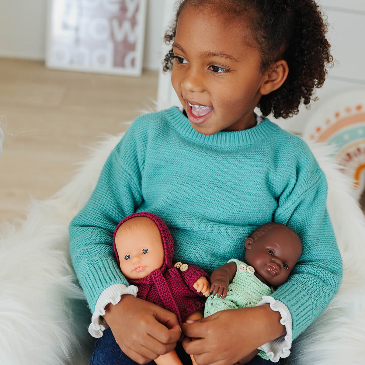 Miniland Educational doll collections are an important educational resource which help comprehend the concepts of family, population groups, the basic rules of relationships and coexistence, and respect for racial and sexual diversity. The dolls have well-defined ethnic features to help children identify the various races.