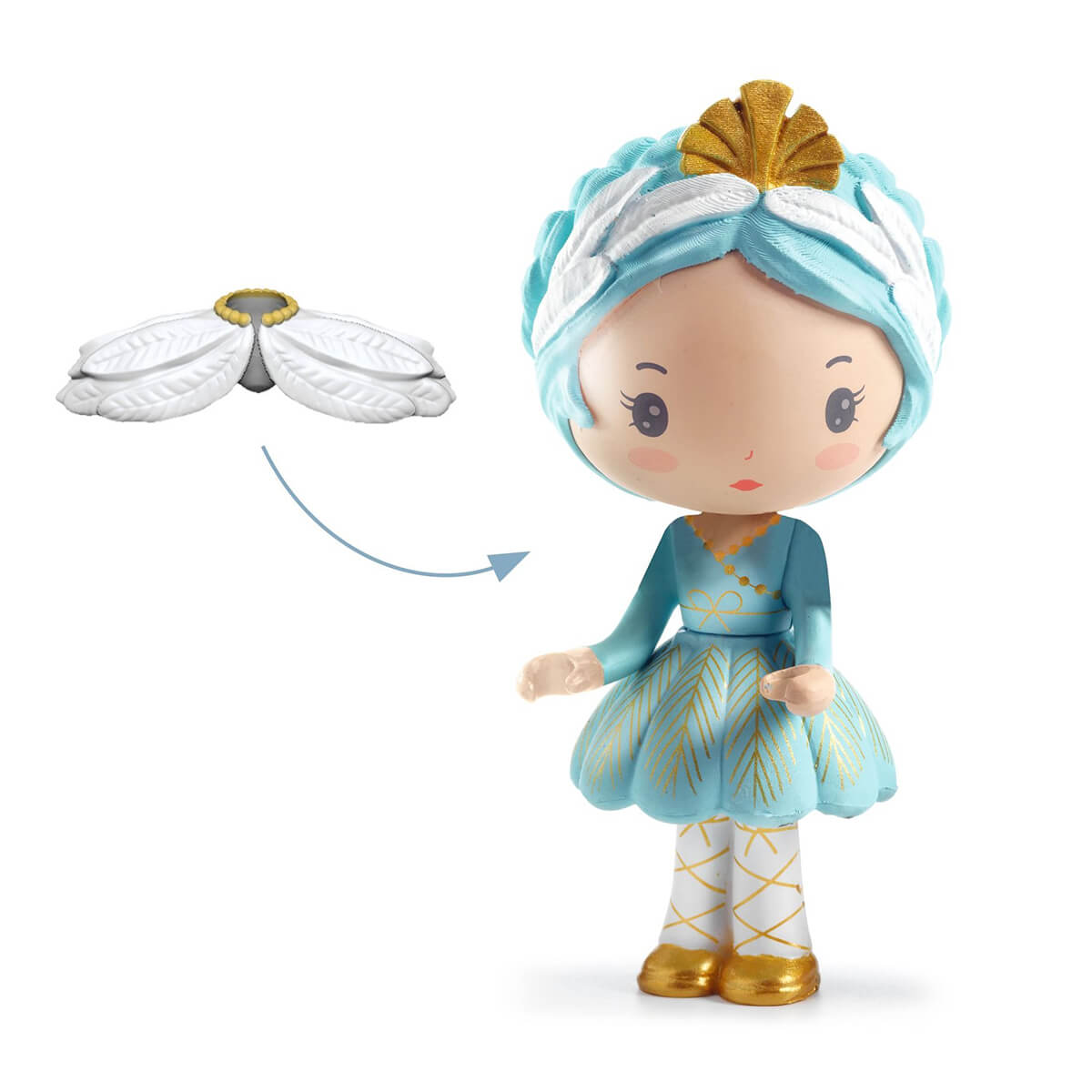 Grace And Stella Tinyly Figures by Djeco. The elegant fairy Grace has a crown of feathers in her hair and pretty white wings, with a removable feather cape. Grace is always accompanied by her inseparable companion Stella and her bird to dance in complete freedom. Tinyly Grace character with articulated arms and head, supplied with one companion and two accessories.