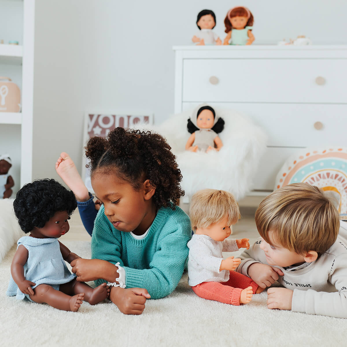 Miniland Educational doll collections are an important educational resource which help comprehend the concepts of family, population groups, the basic rules of relationships and coexistence, and respect for racial and sexual diversity. The dolls have well-defined ethnic features to help children identify the various races.