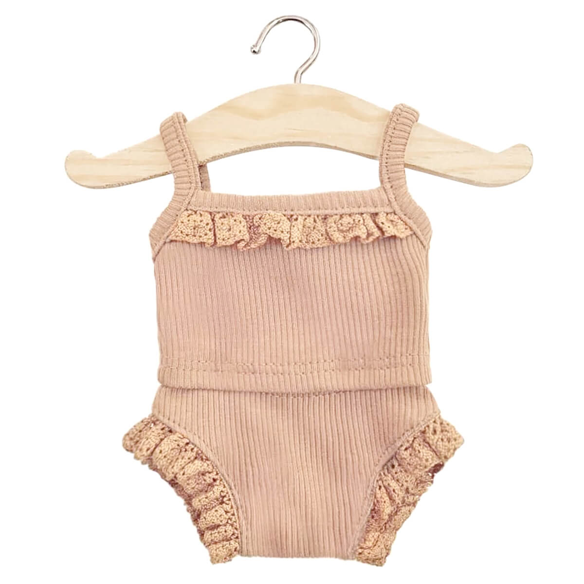 Lace Trim Ribbed Girl's Underwear Set (34cm Doll) in Petal by Minikane