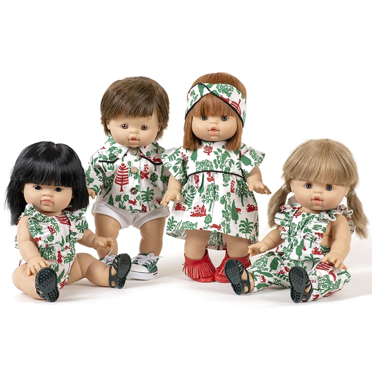 Maya jumpsuit by Minikane. Beautiful handmade doll's jumpsuit in in a special print designed by Nathalie Lété. Fits the Paola Reina 34cm Gordi baby dolls.