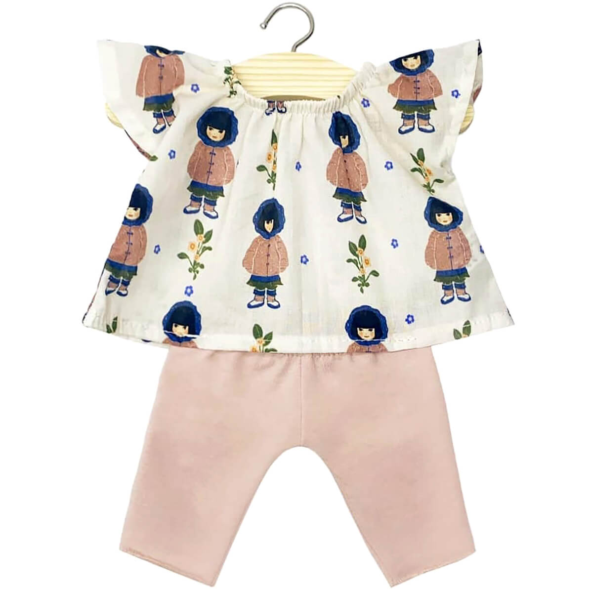 Mazarine outfit by Minikane. Beautiful handmade doll's outfit consisting of a a pretty flutter sleeve blouse and coordinating jersey leggings. Fits the Paola Reina 34cm Gordi baby dolls.
