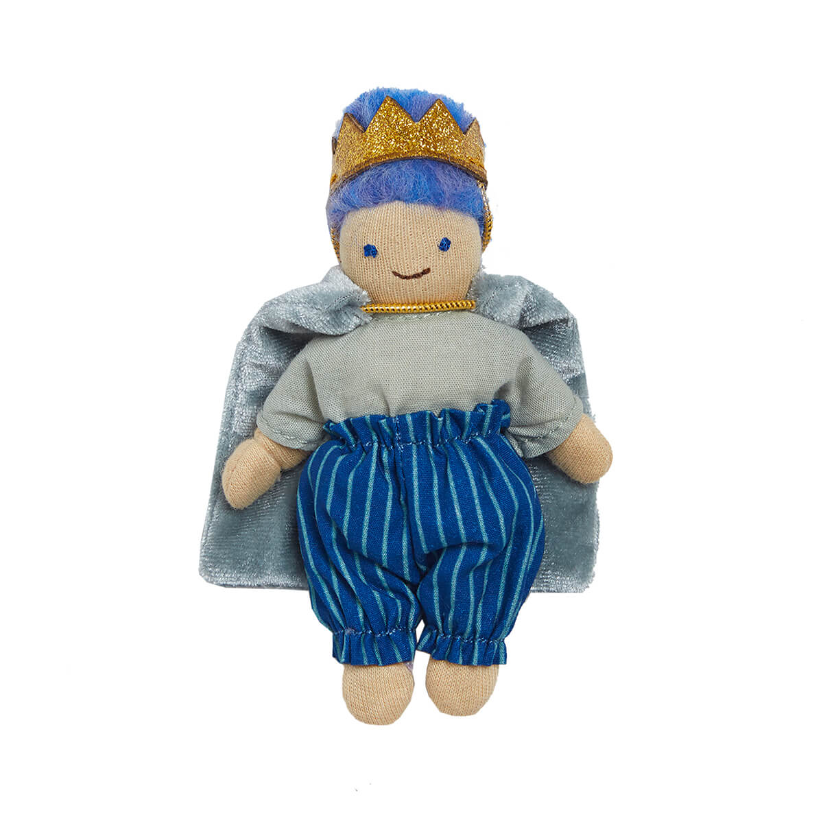 Prince Galience Holdie Folk pocket-sized doll by Olli Ella. Holdie™ Folk Prince Galience is sure to be everyone's favourite Prince with good manners a plenty and superior fair maiden rescuing skills. Like all Holdie™ Folk, Prince Galience is fully poseable; he wears a removable royal outfit complete with a regal cape and crown. Made by hand, Prince Galience is the perfect size pal to pop in a pocket or the palm of a hand. Just add a sprinkle of Imagination to bring your Holdie™ friend to life!