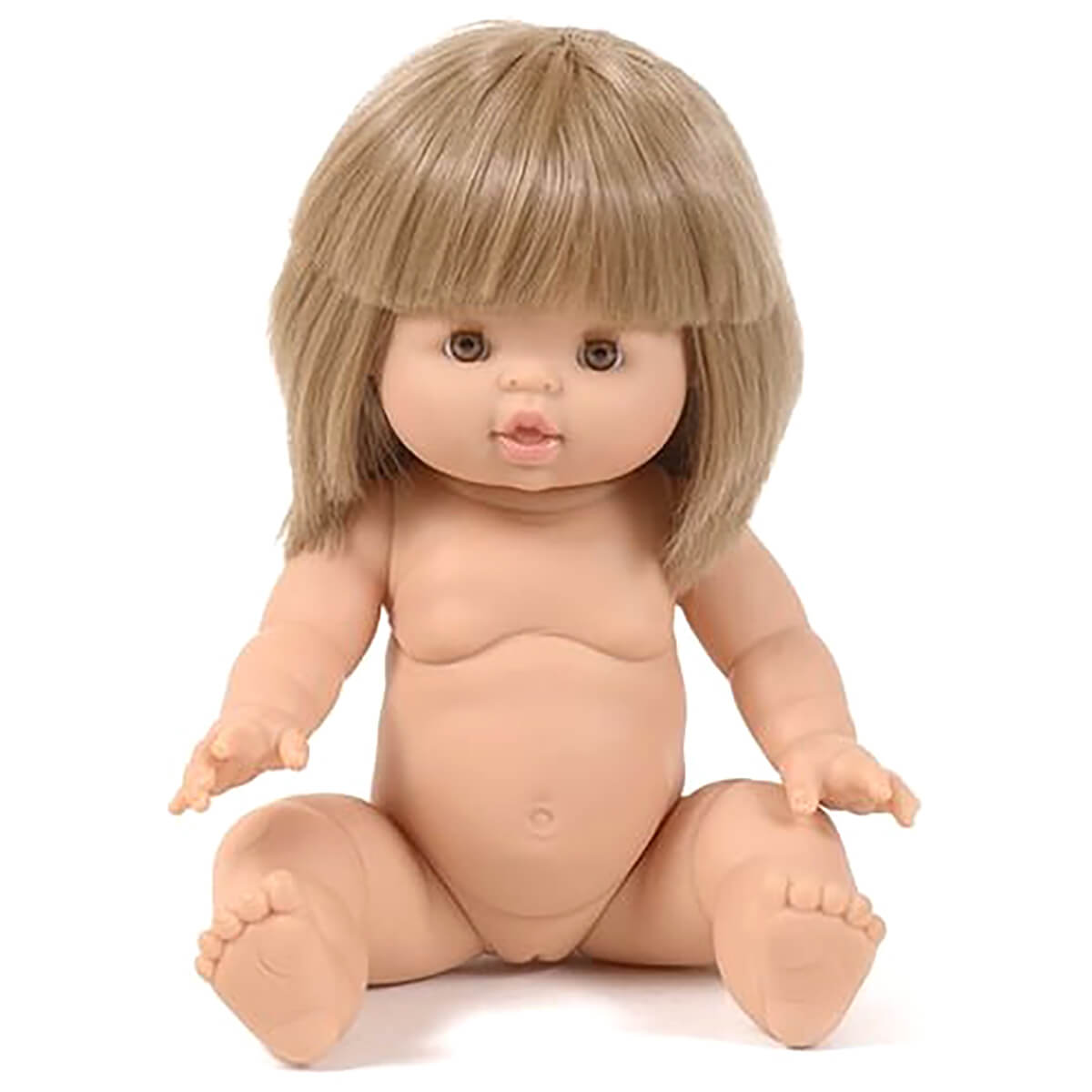 Zoe girl doll by Minikane X Paola Reina. Anatomically correct doll lightly vanilla scented to smell like a newborn baby. With moveable limbs and head and sewn on hair, the doll is manufactured from non-toxic Phthalates-free vinyl, which makes it soft and flexible to touch, and very resilient.