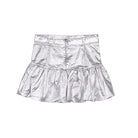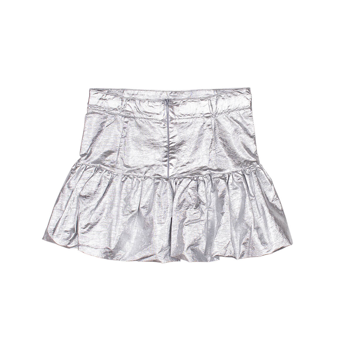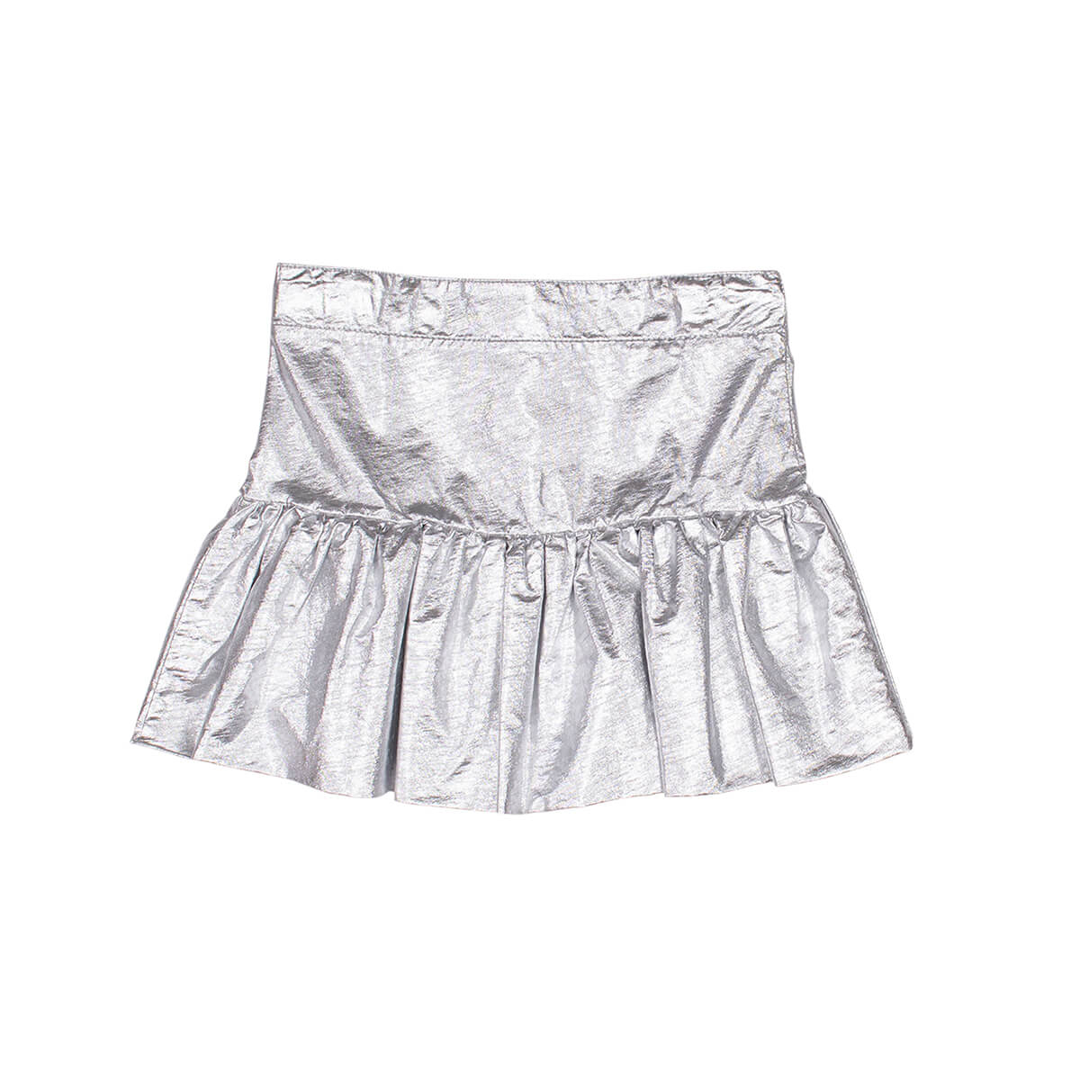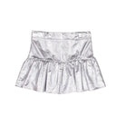 Cloud skirt by Wynken. A frilled mini skirt in sparkly silver cotton. Featuring hidden zip closure at the back.