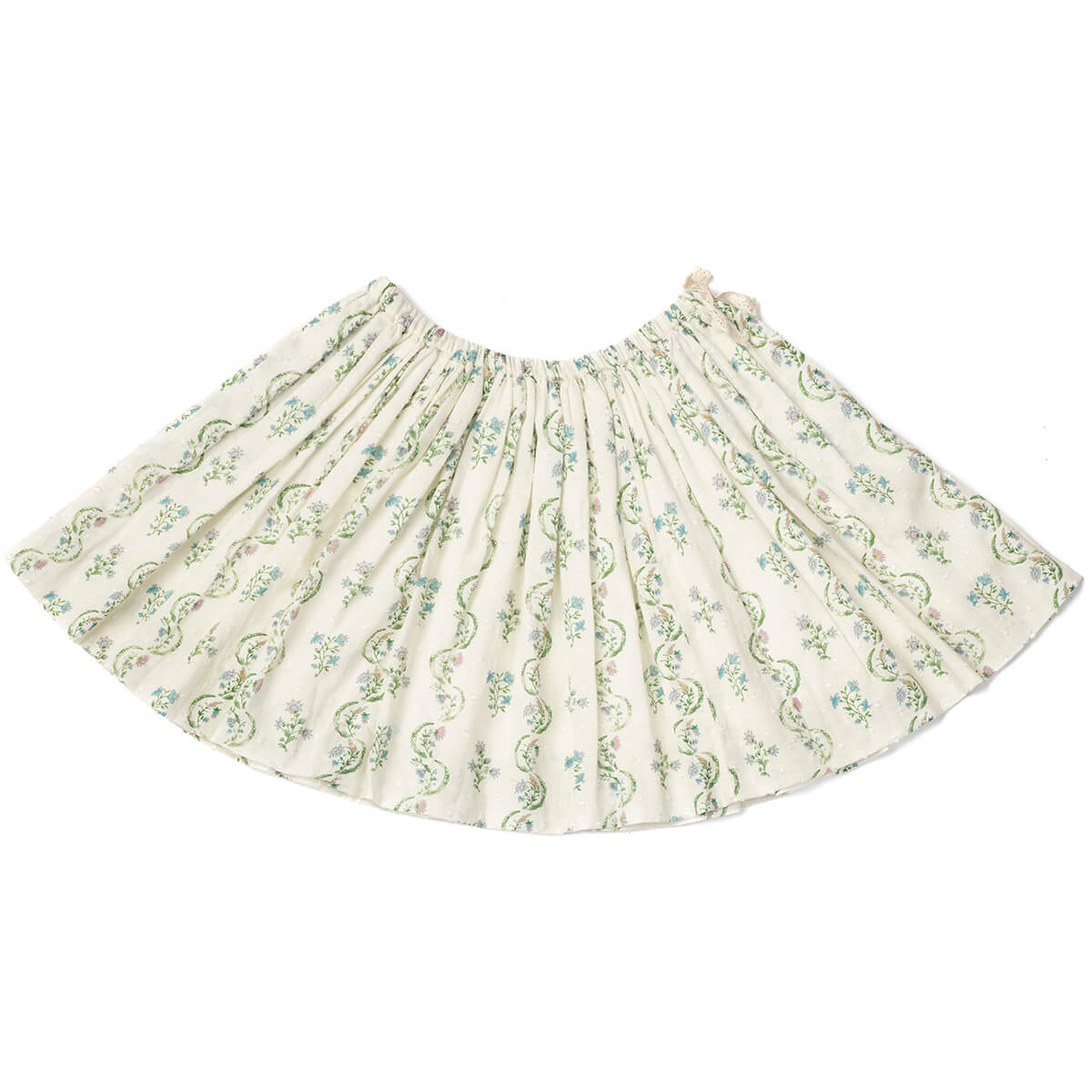 Twirly Skirt by Lali. Lali's beloved twirly skirt with its comfy waist and full gathers lends itself to twirling the day away. Cut and sew in this season’s floral vine print on soft lightweight swiss dot cotton dobby.