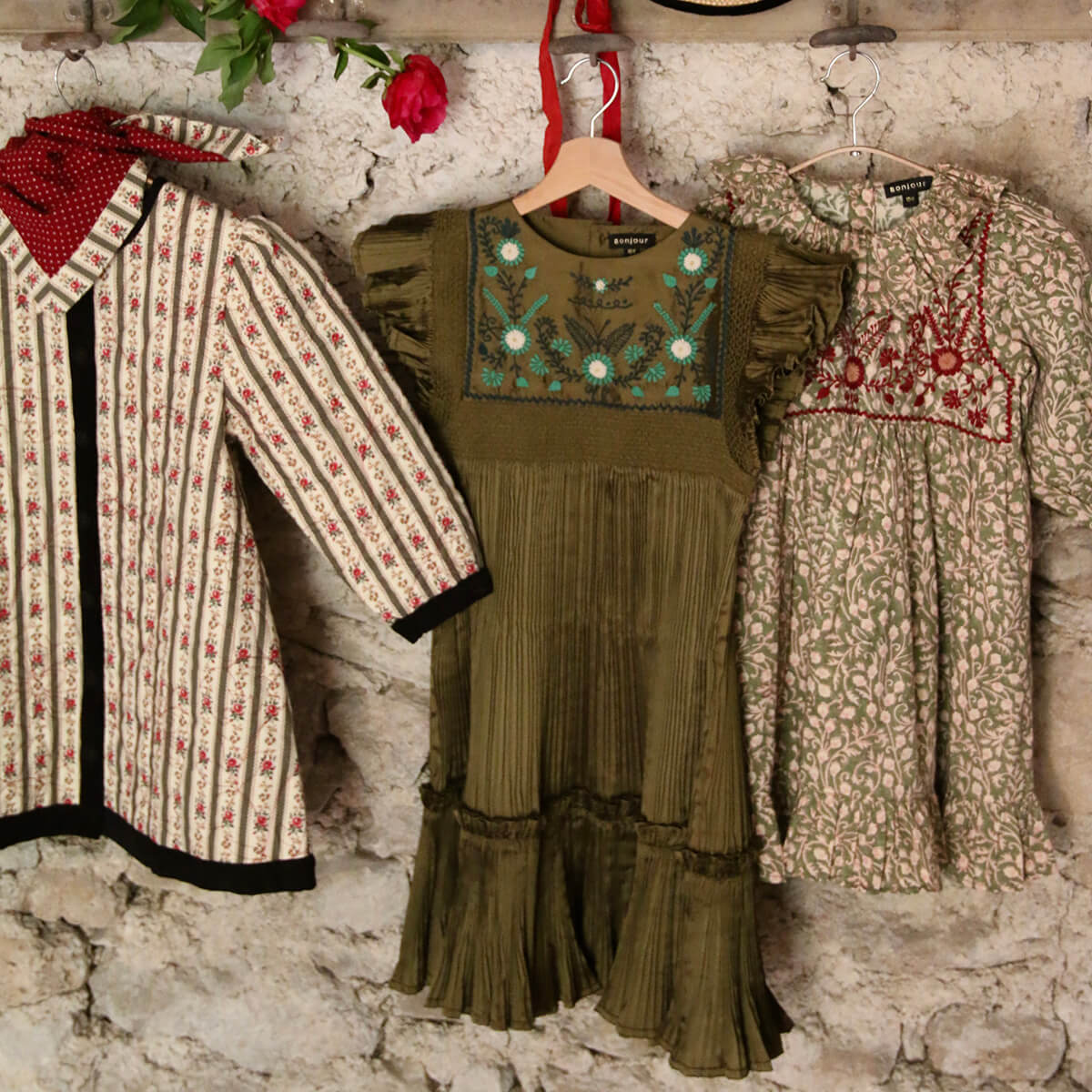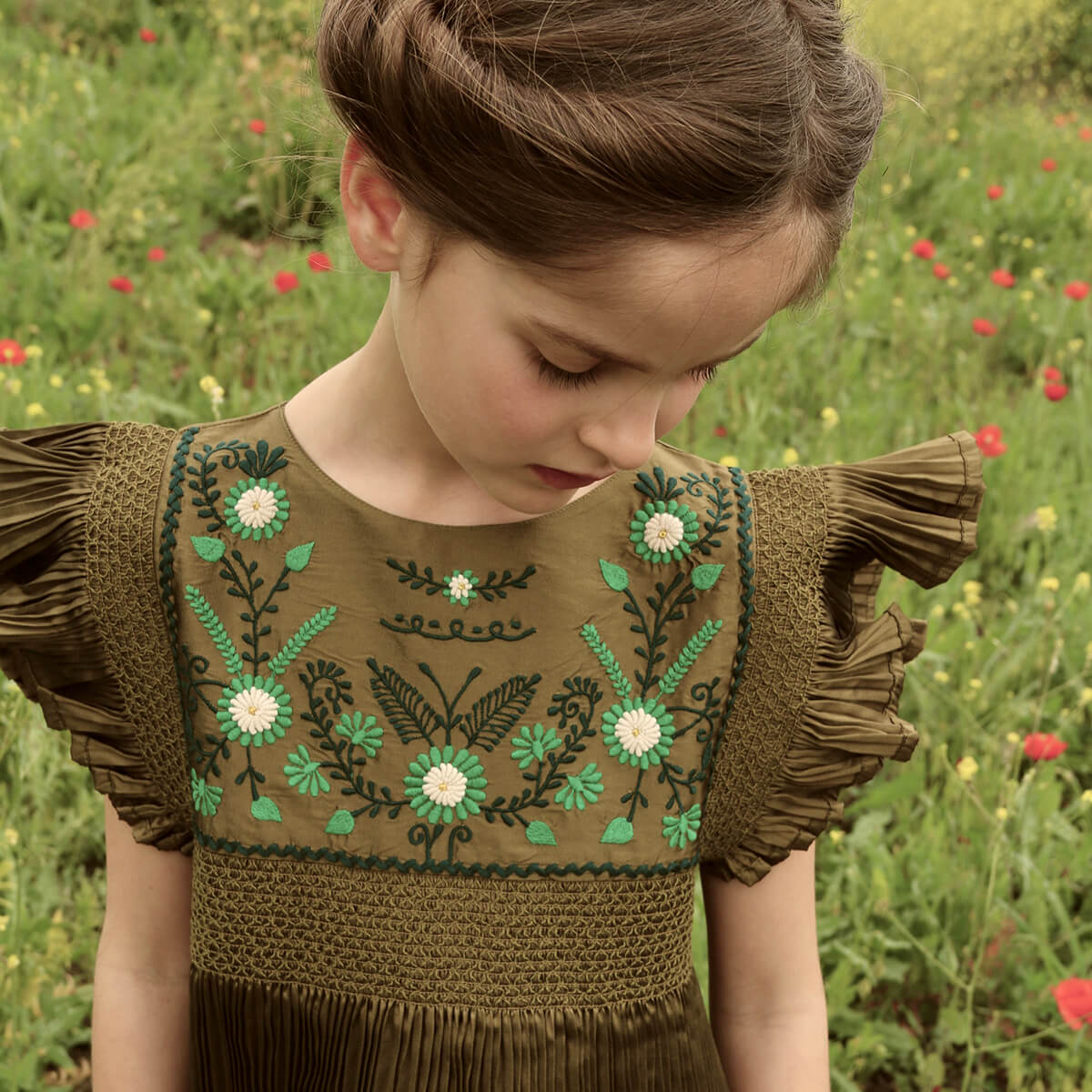 Dress by Bonjour. Short flutter sleeve dress with pretty floral embroidery.