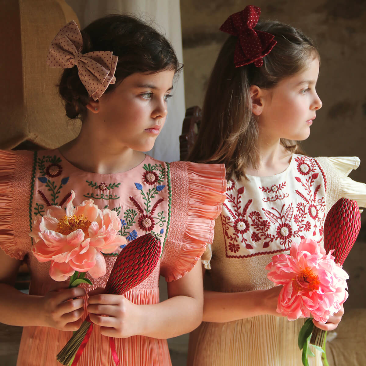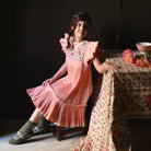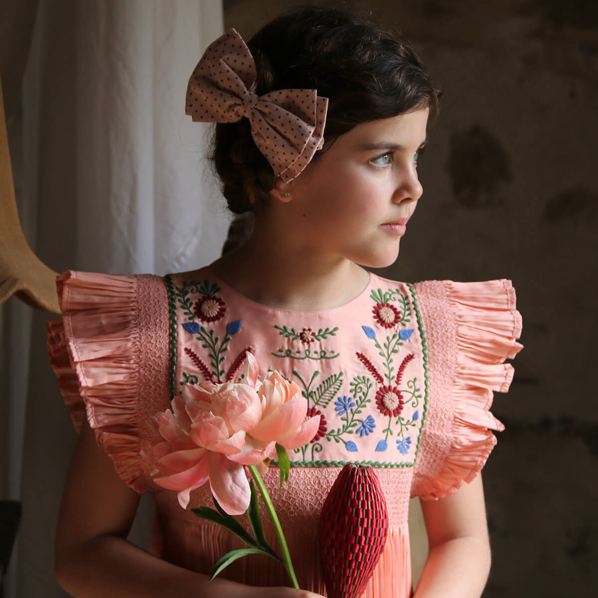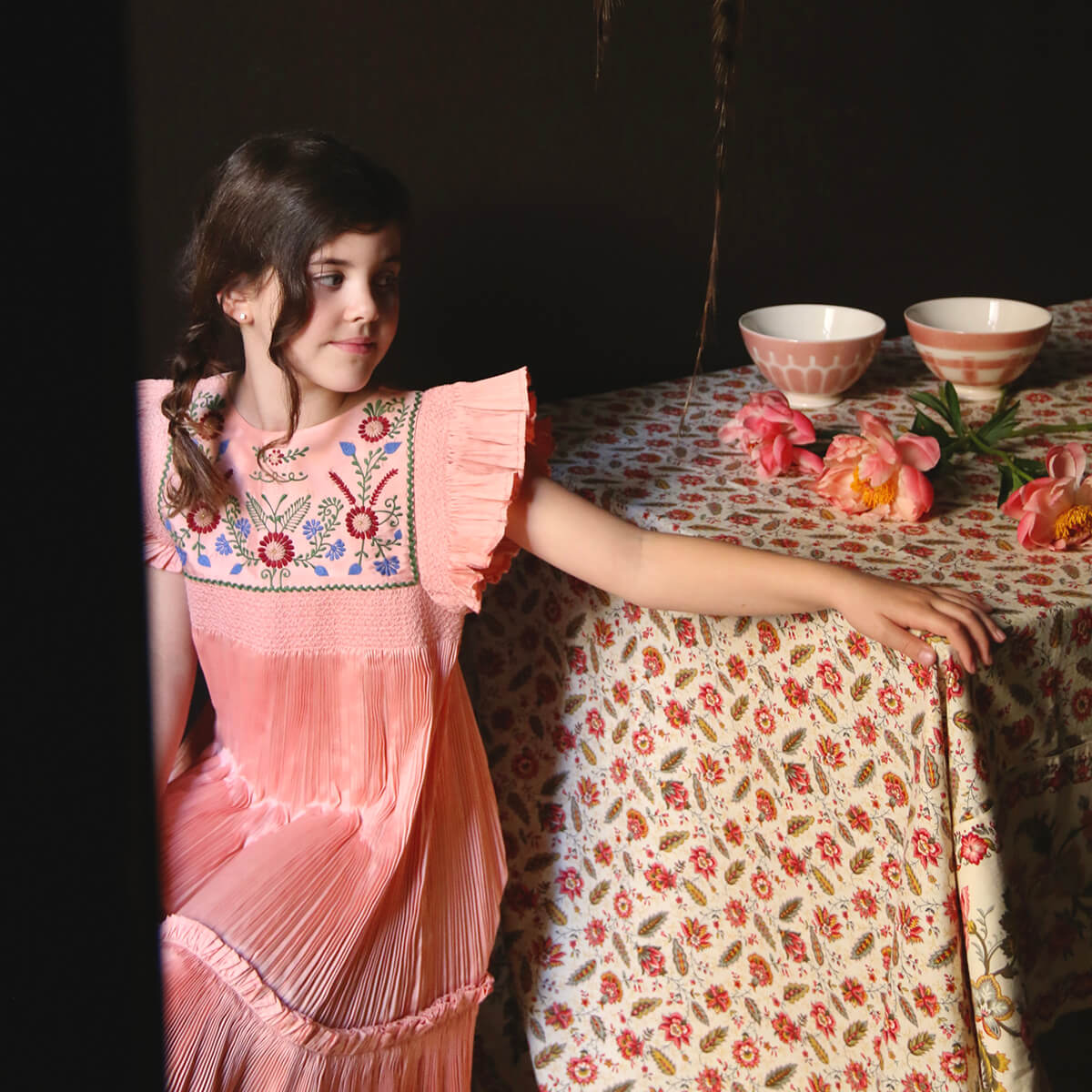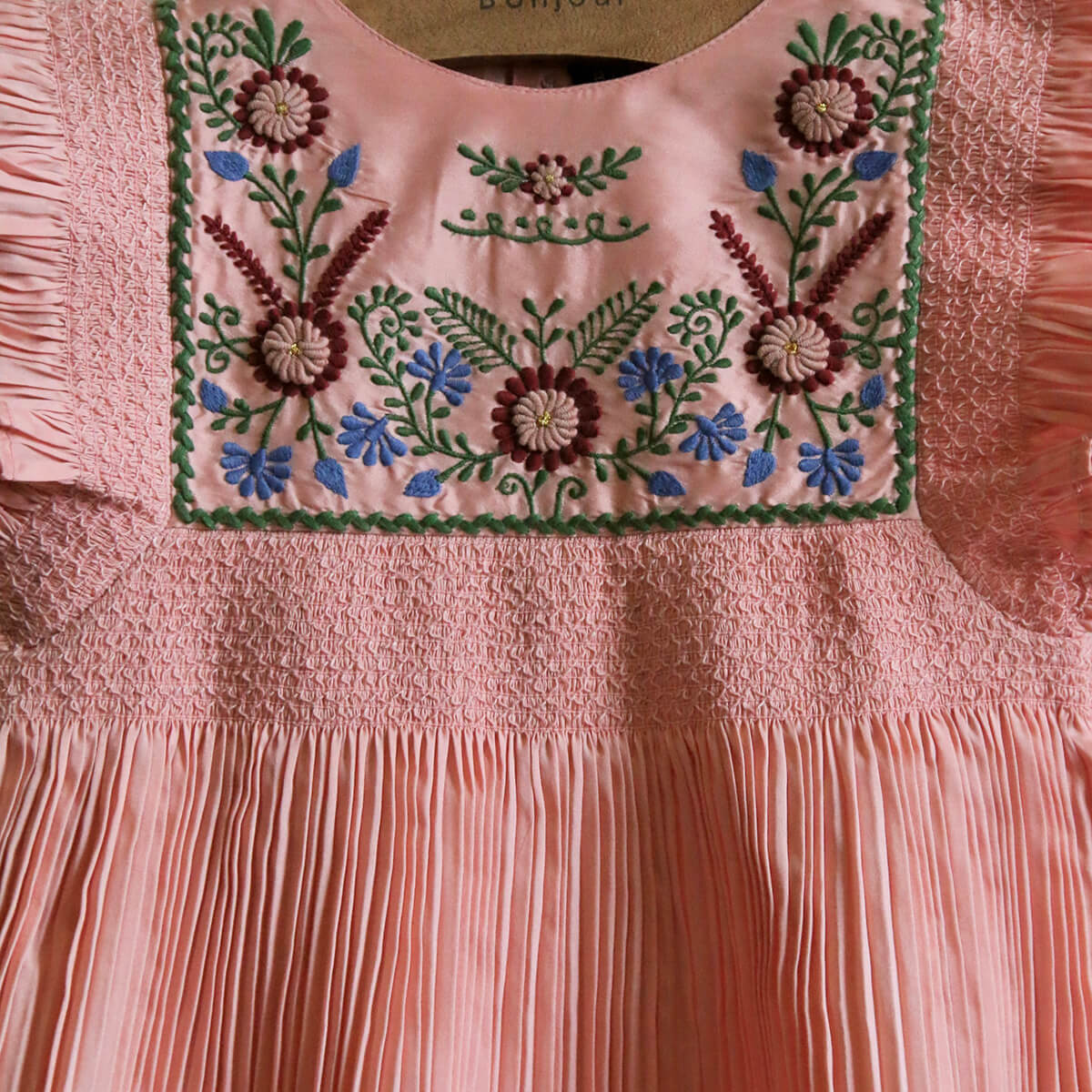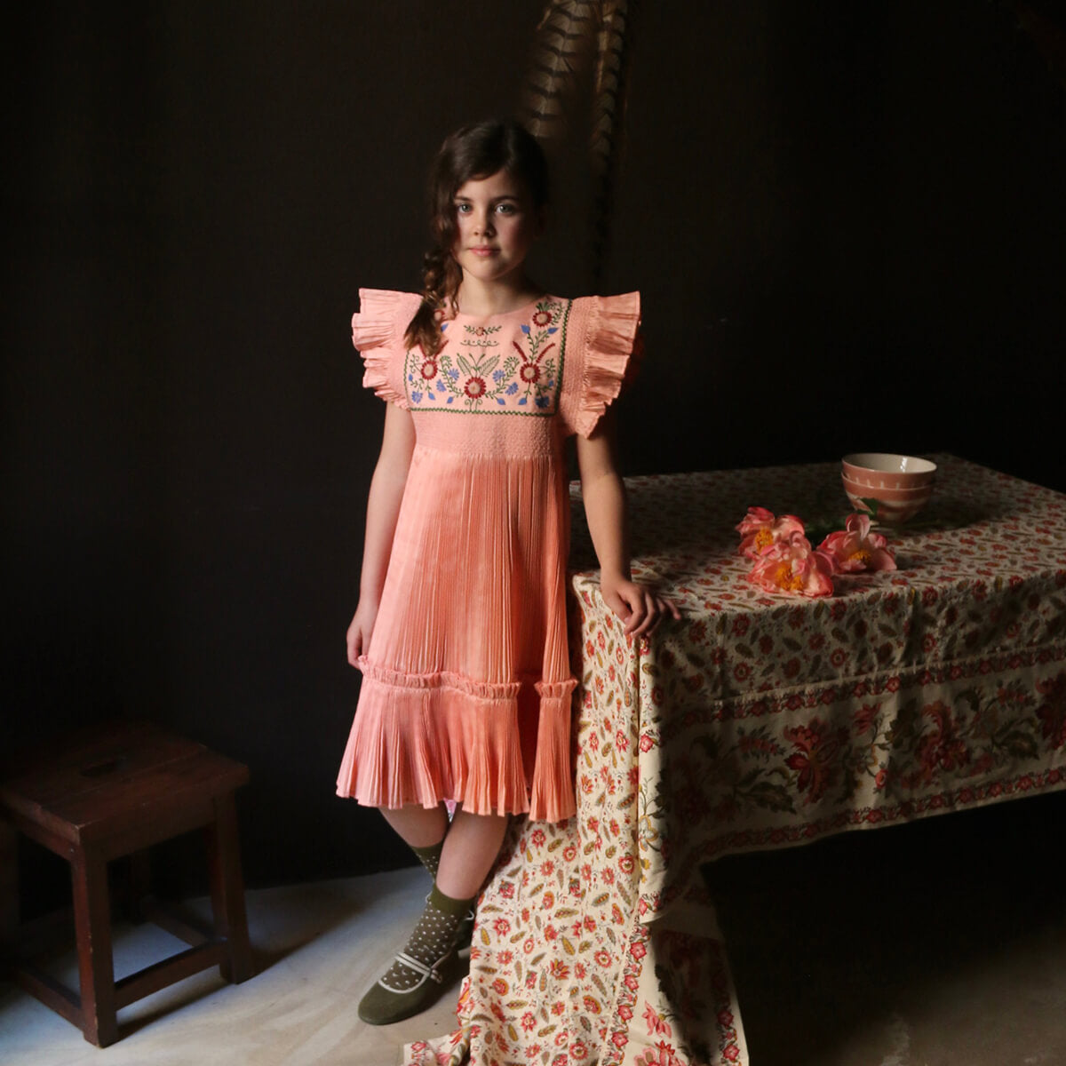 Dress by Bonjour. Short flutter sleeve dress with pretty floral embroidery.