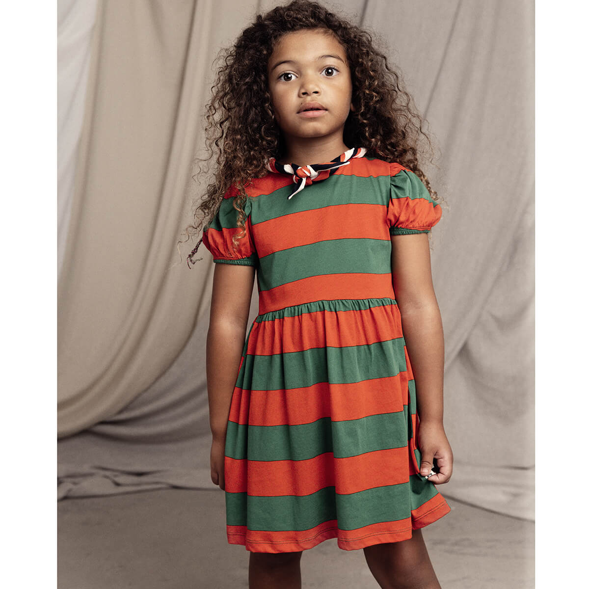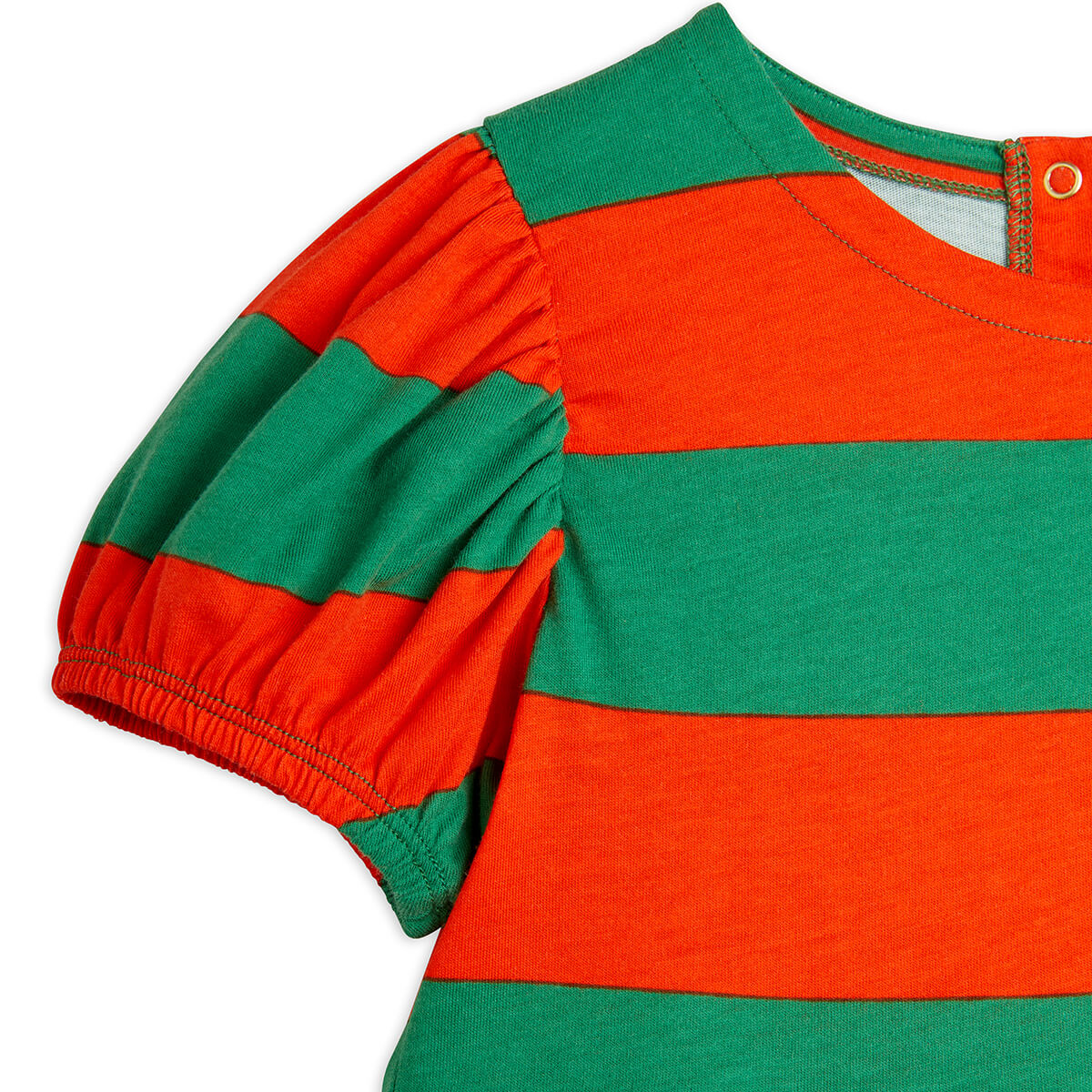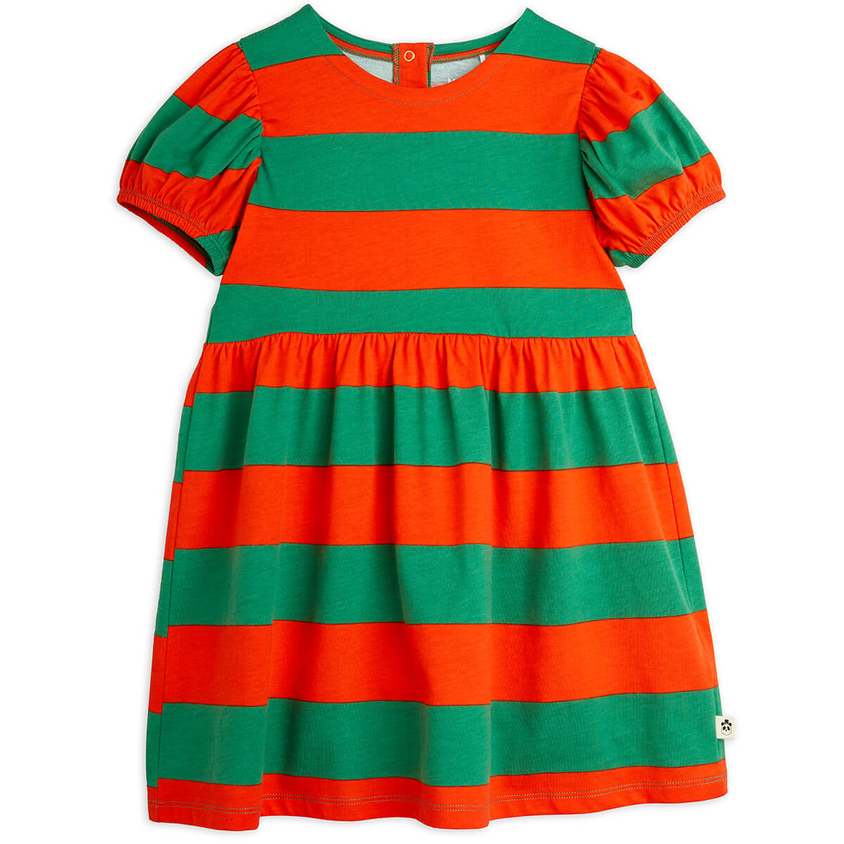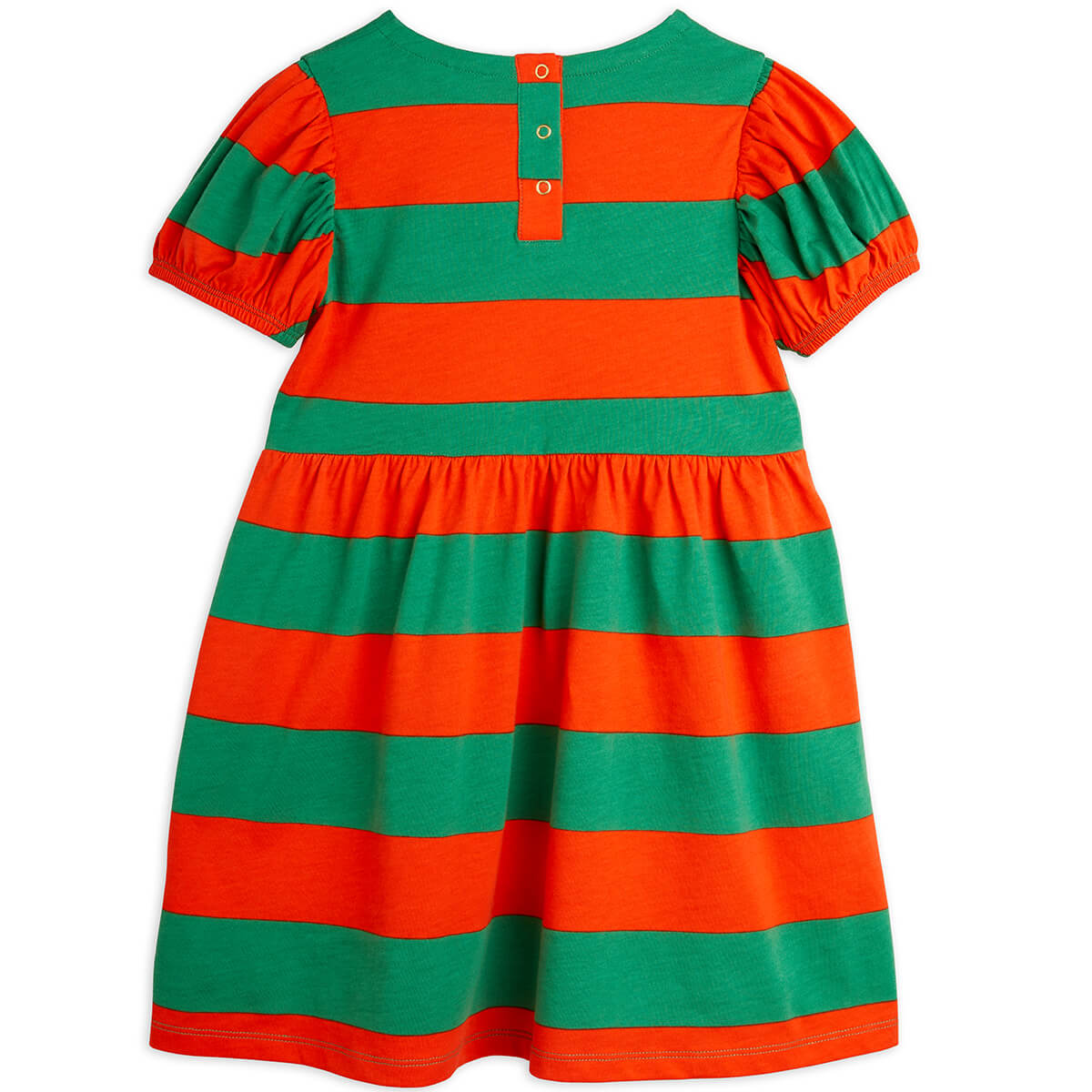 Stripe Puff Sleeve Dress by Mini Rodini. Cotton dress with puff sleeves, all over stripe print and snap button closure on the back.