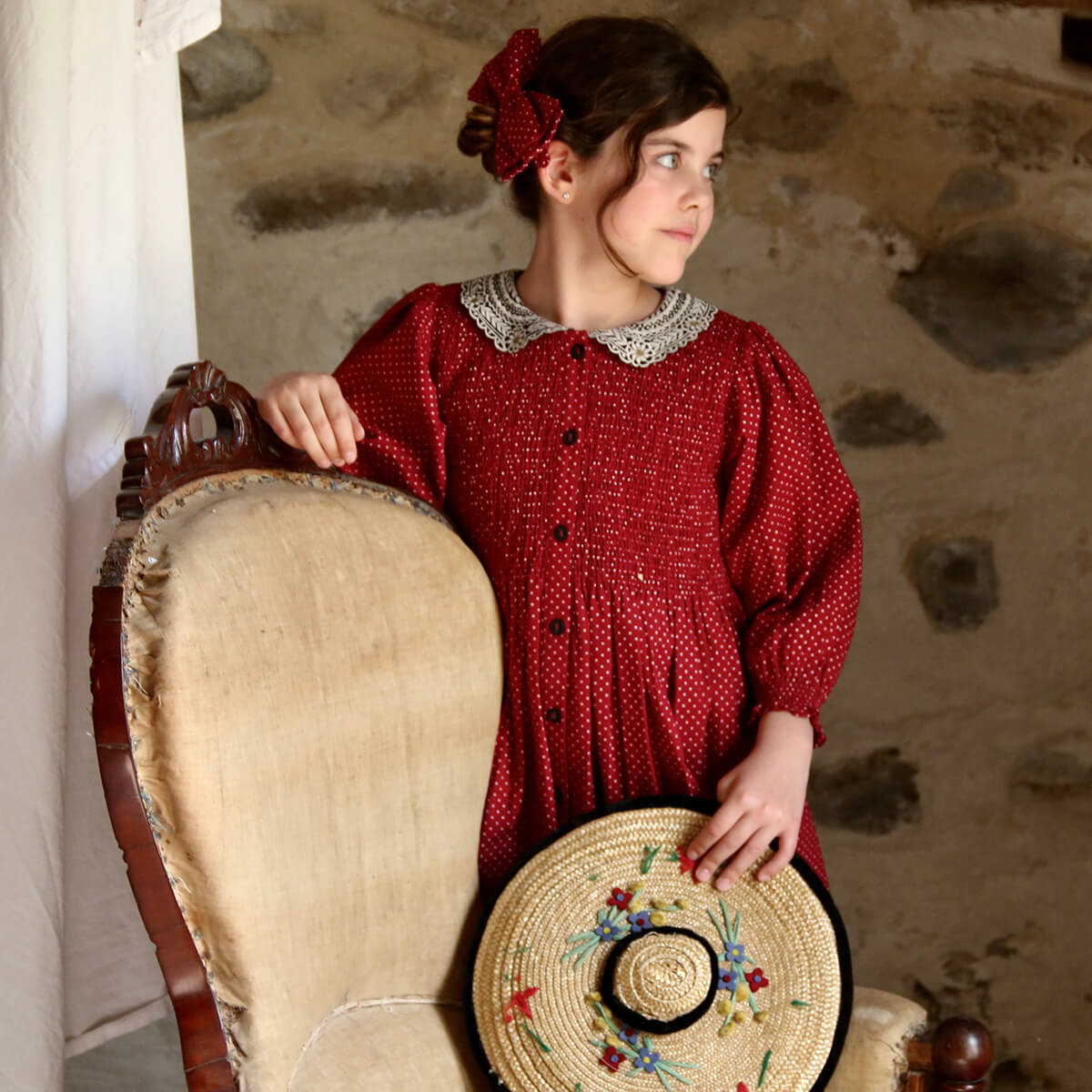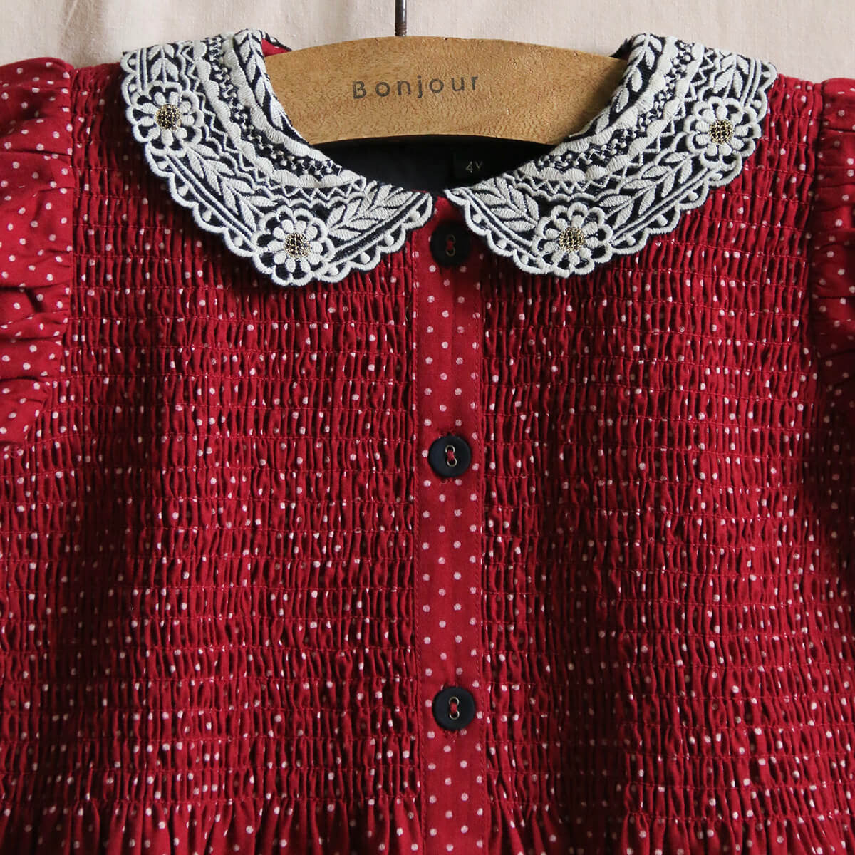 Tunique With Hair Clip in Red Wine Dot Print by Bonjour