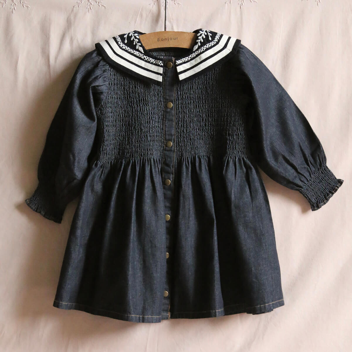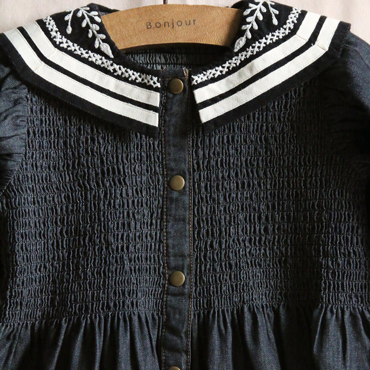 Tunique With Sailor Collar in Black Denim by Bonjour