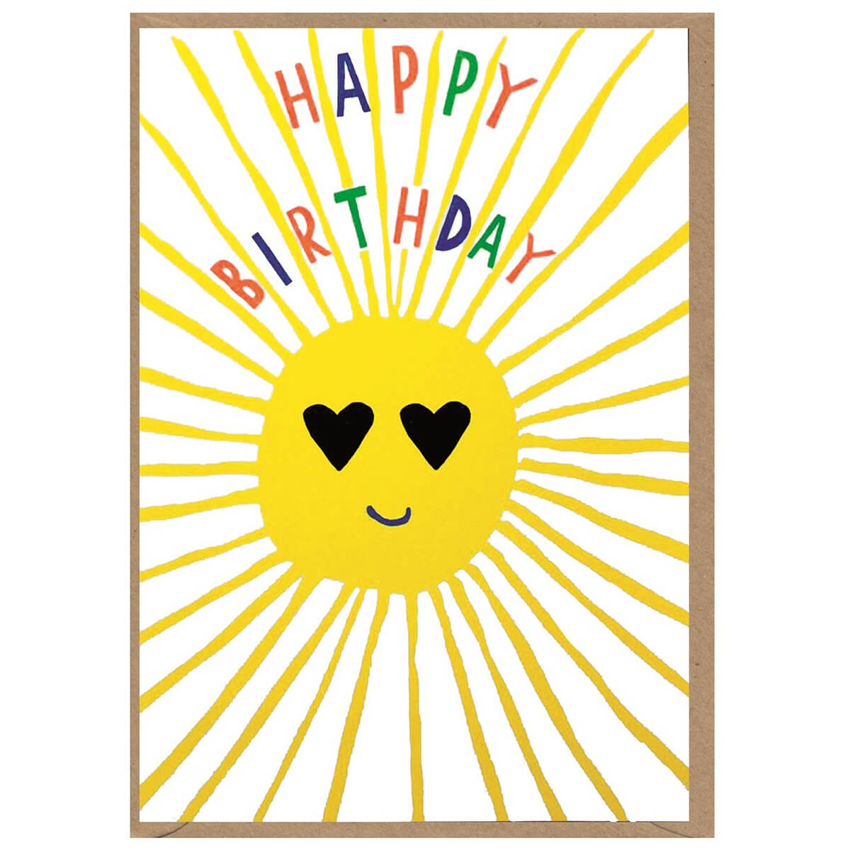 Neon Sunshine greetings card by Earlybird Designs.  From the Fab Neon card collection by Dominic Early.  Blank inside with kraft envelope.