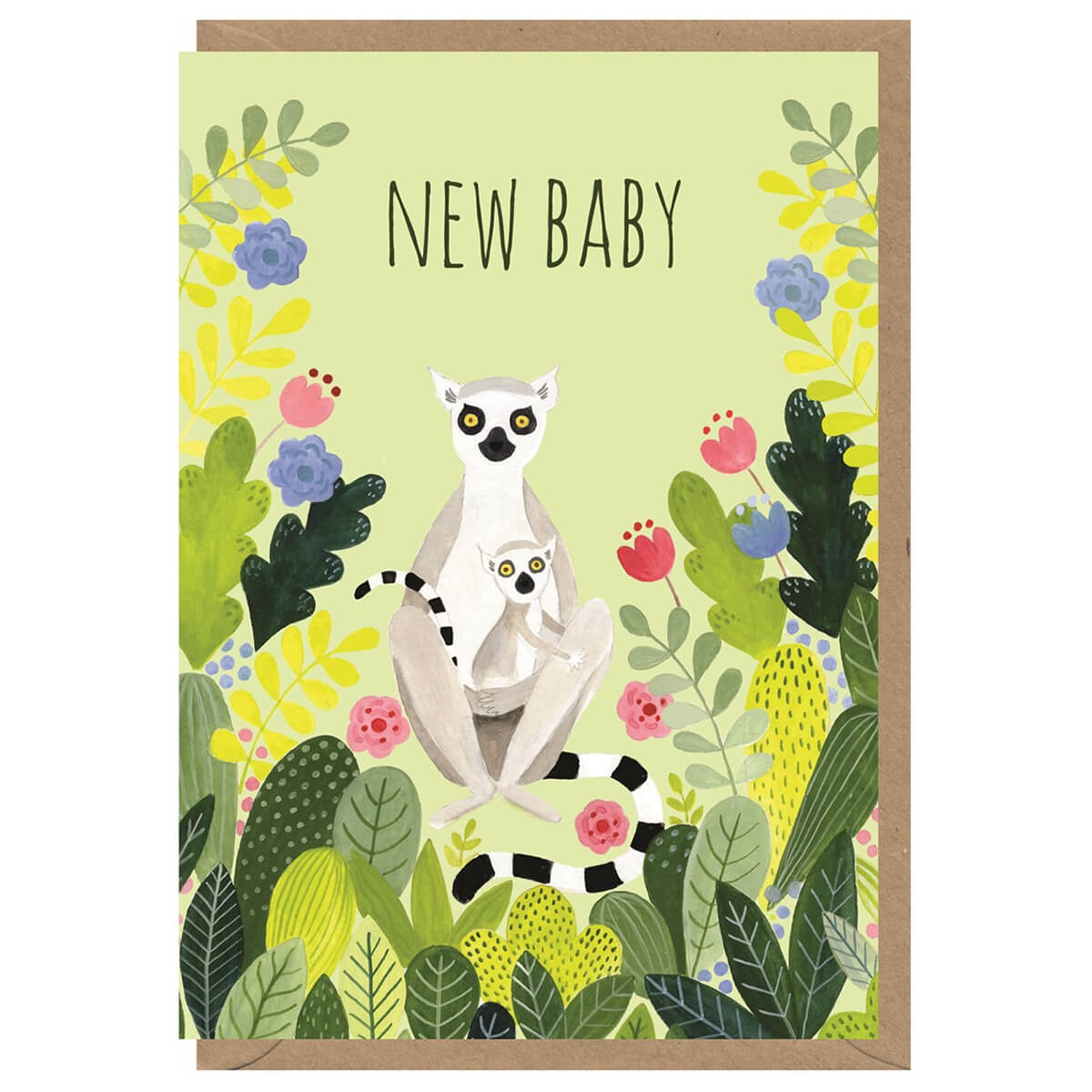New Baby greetings card by Earlybird Designs. Features an illustration by Bex Parkin. Blank inside with kraft envelope.