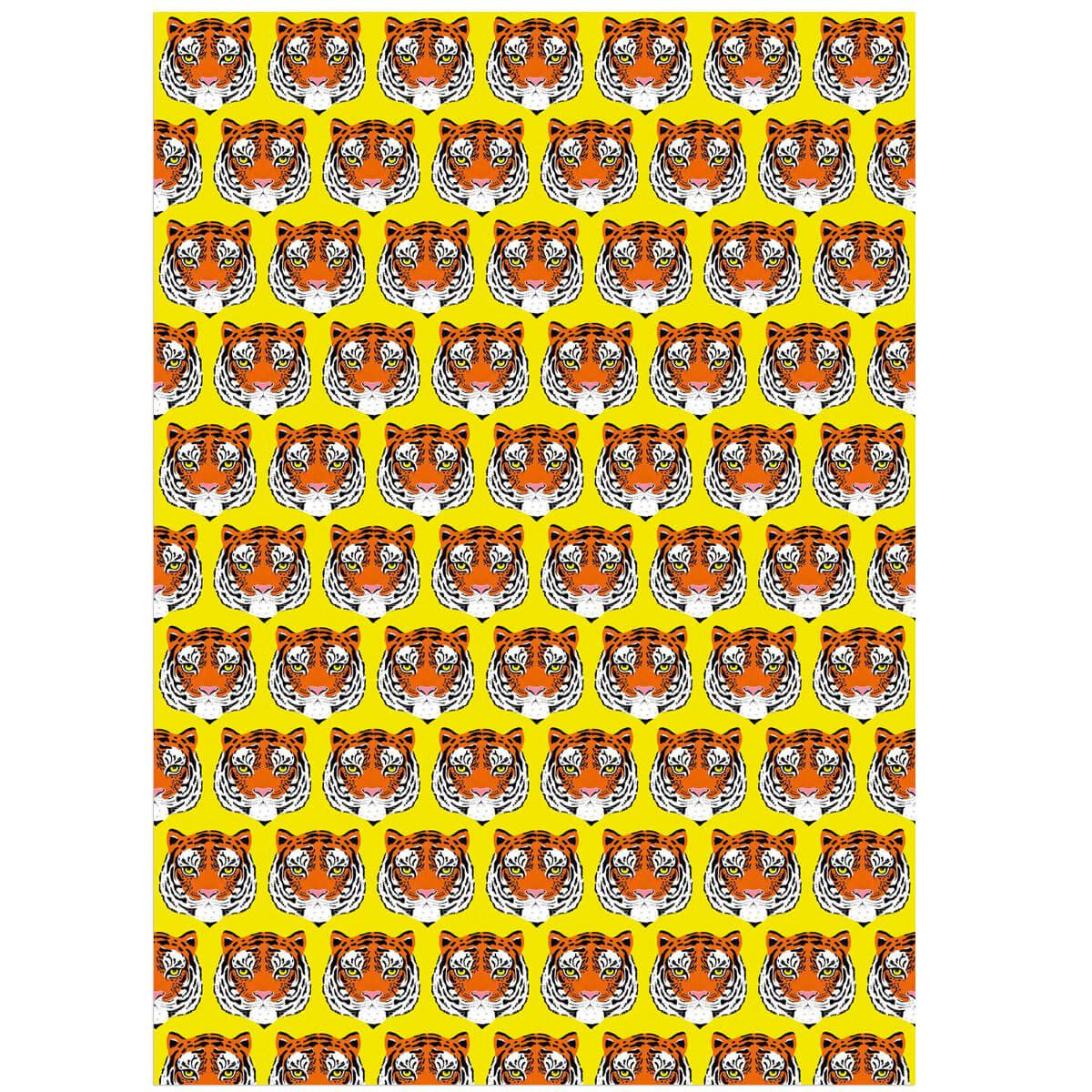 Tiger Face print gift wrap by Earlybird Designs.  Matt finish gift wrap in high quality 110gsm weight featuring a tiger face repeat design by Bex Parkin.