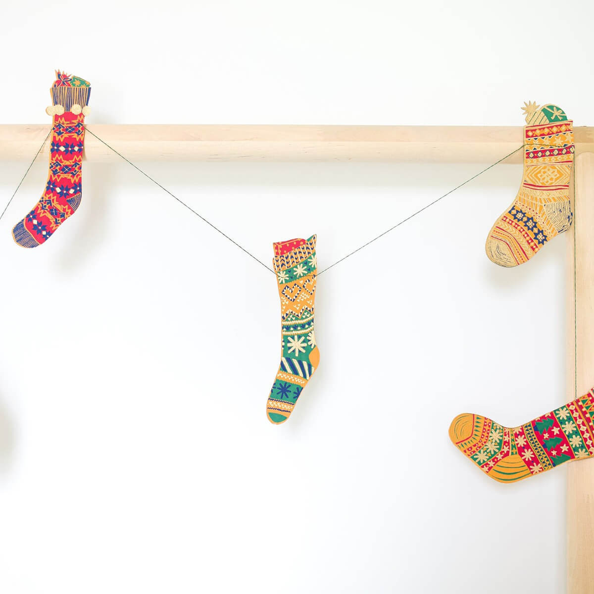 Festive Stockings Paper Garland (3 Metres) by East End Press