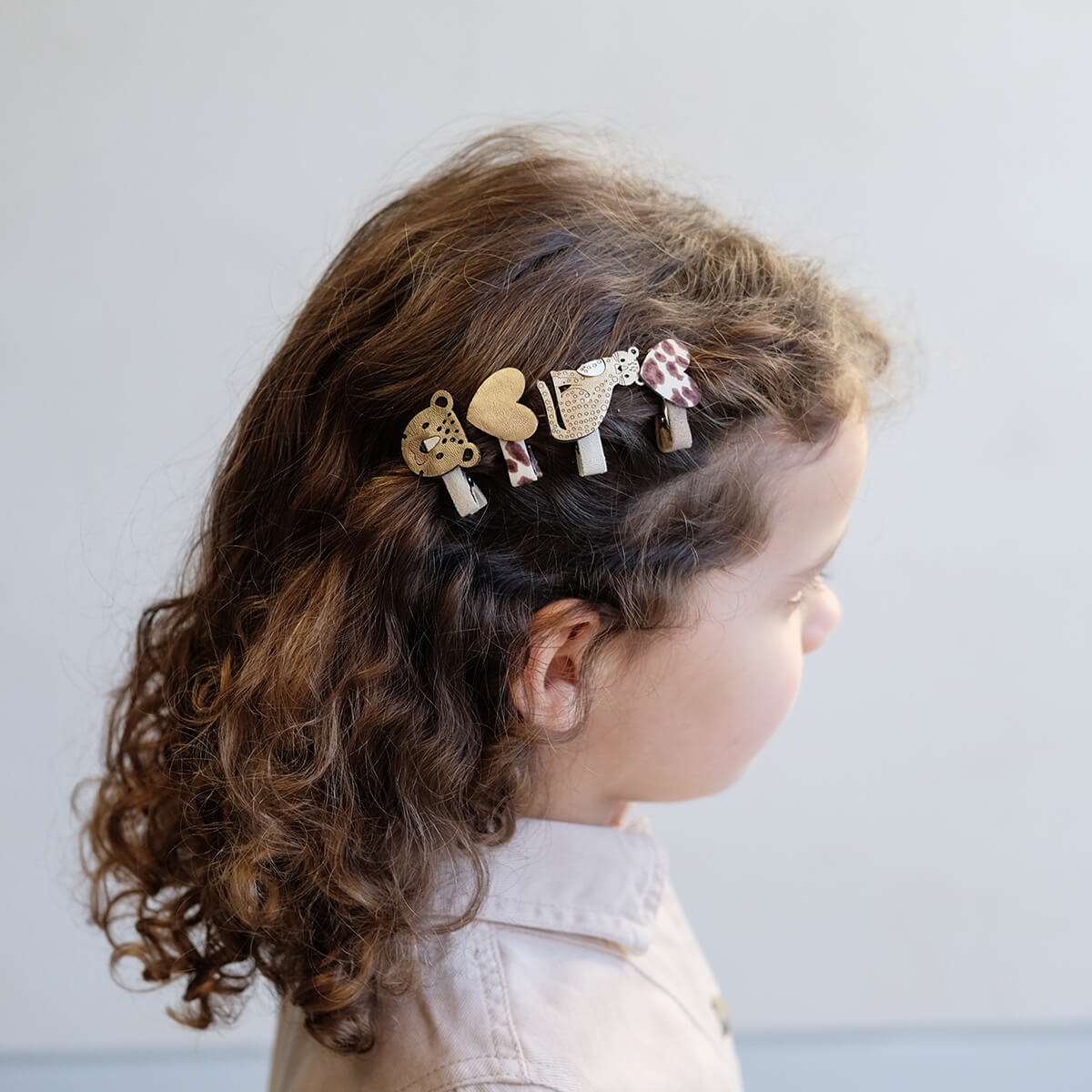 Larry Leopard Mini Clips by Mimi & Lula. Unleash their wild side with these lovely Larry leopard mini clips. Purr-fectly on trend and coming in a gorgeously neutral palette to compliment any look.
