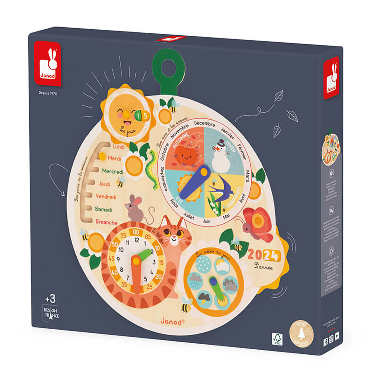 Time Wheel by Janod. What day is it? Why do I have to wear a jumper today? Little ones often struggle to understand the concepts of time and seasons, and are bound to have lots of questions! An actual children's calendar: this wheel of time is a Monterssori inspired tool to help toddlers aged 3 years and up better understand the passing of time. French language.