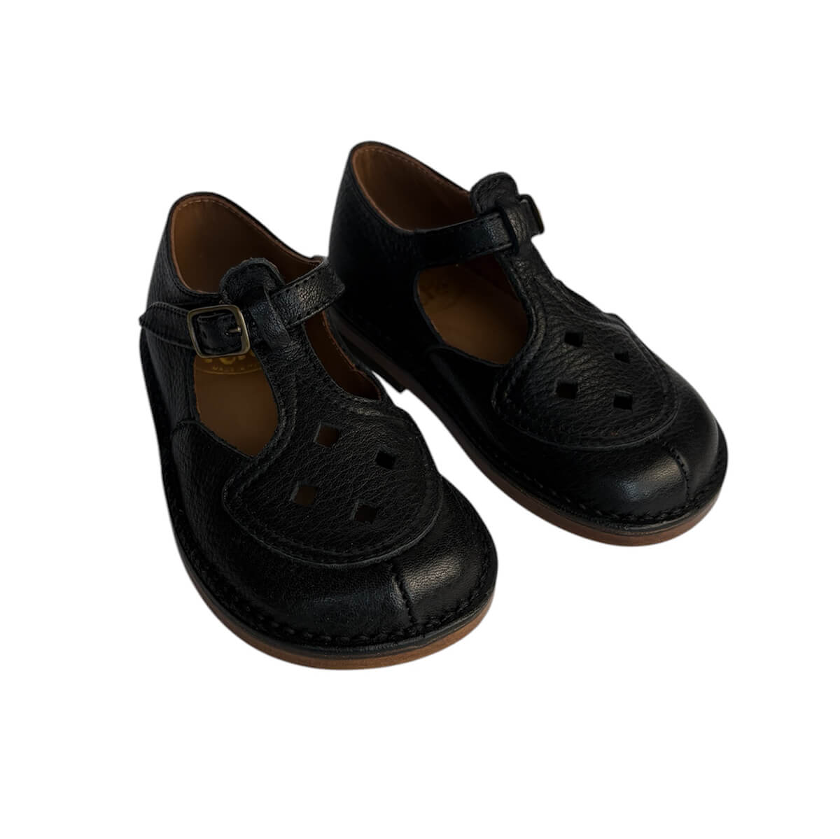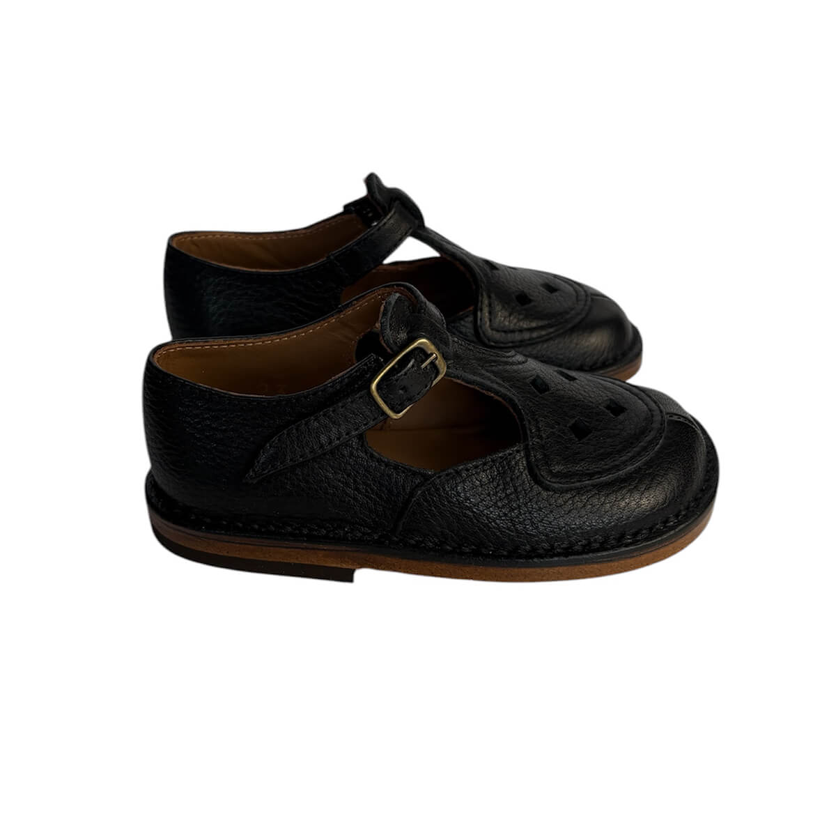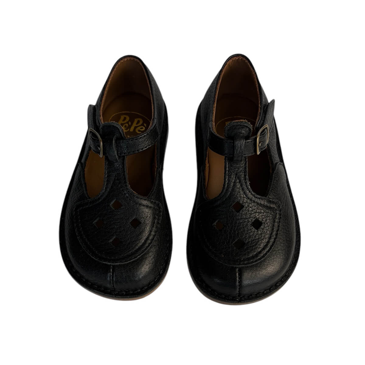 Ezra cut out sandals by PèPè shoes. Velcro T bar shoes in vegetally tanned black leather with cut out details. Soft and flexible hand made leather sole. Lined with 100% leather. Handmade using traditional methods in Italy.