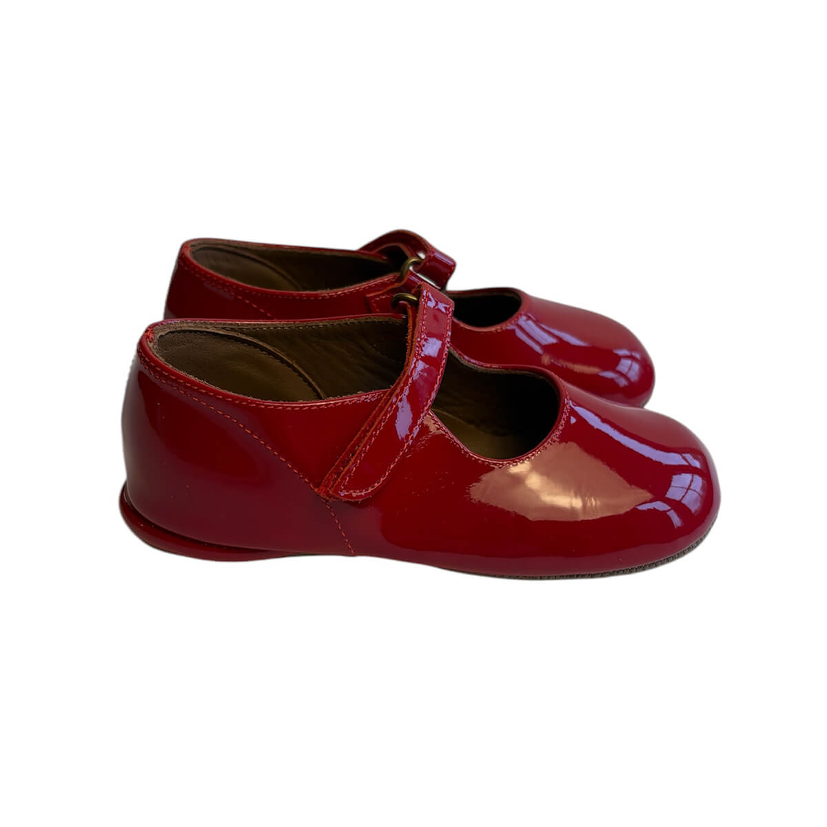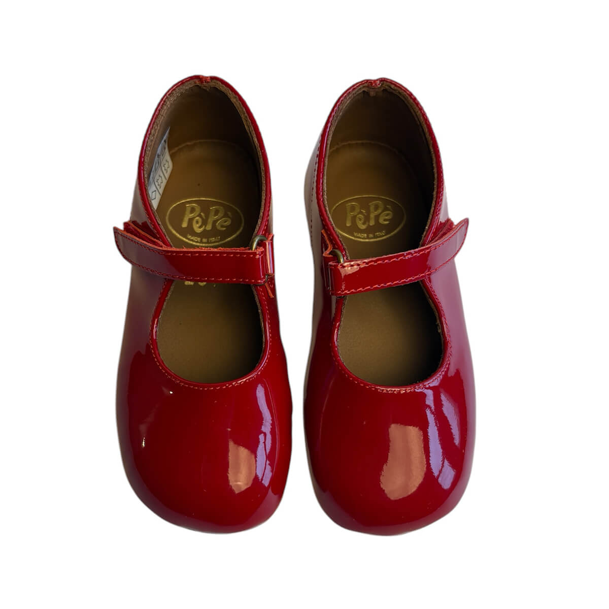 Ginevra patent leather ballet slippers by PèPè shoes. Shiny patent leather velcro strap slippers with a leather lining and rubber sole. The velcro strap is fully adjustable for a perfect fit. Handmade using traditional methods in Italy.