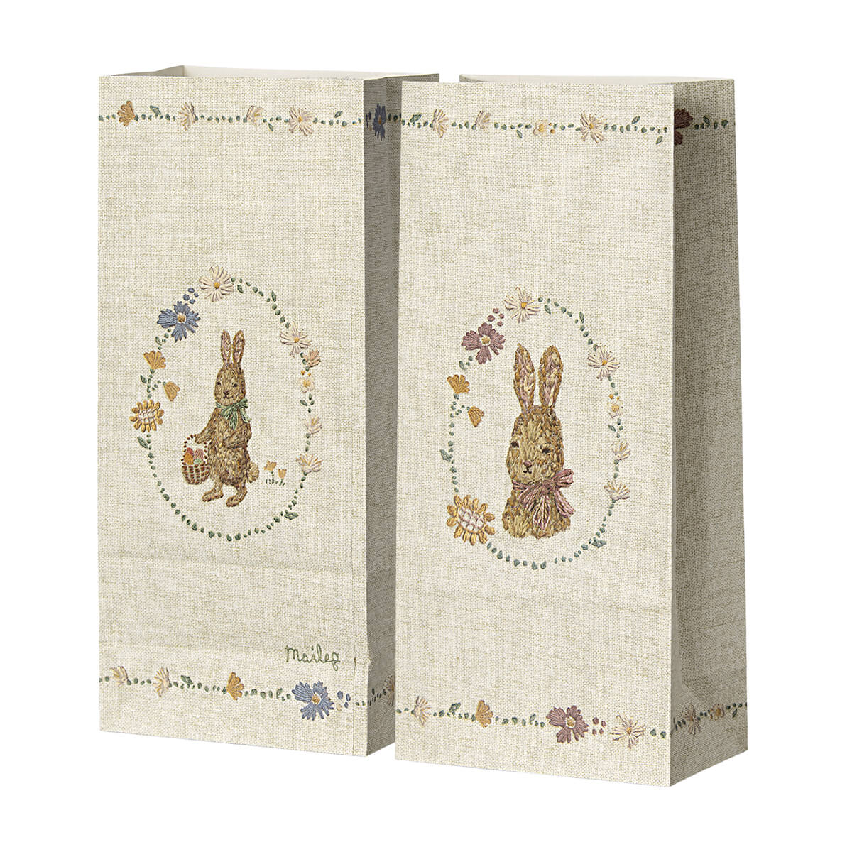 Easter embroideries gift bag by Maileg. Easter is the time of small surprises for your loved ones. Use these paper bags for eggs, soft bunnies or any gift. The decoration on these bags started with Dorthe Mailil's personal embroideries and ended up as beautiful print. The paper quality complies with the food certificate standard.