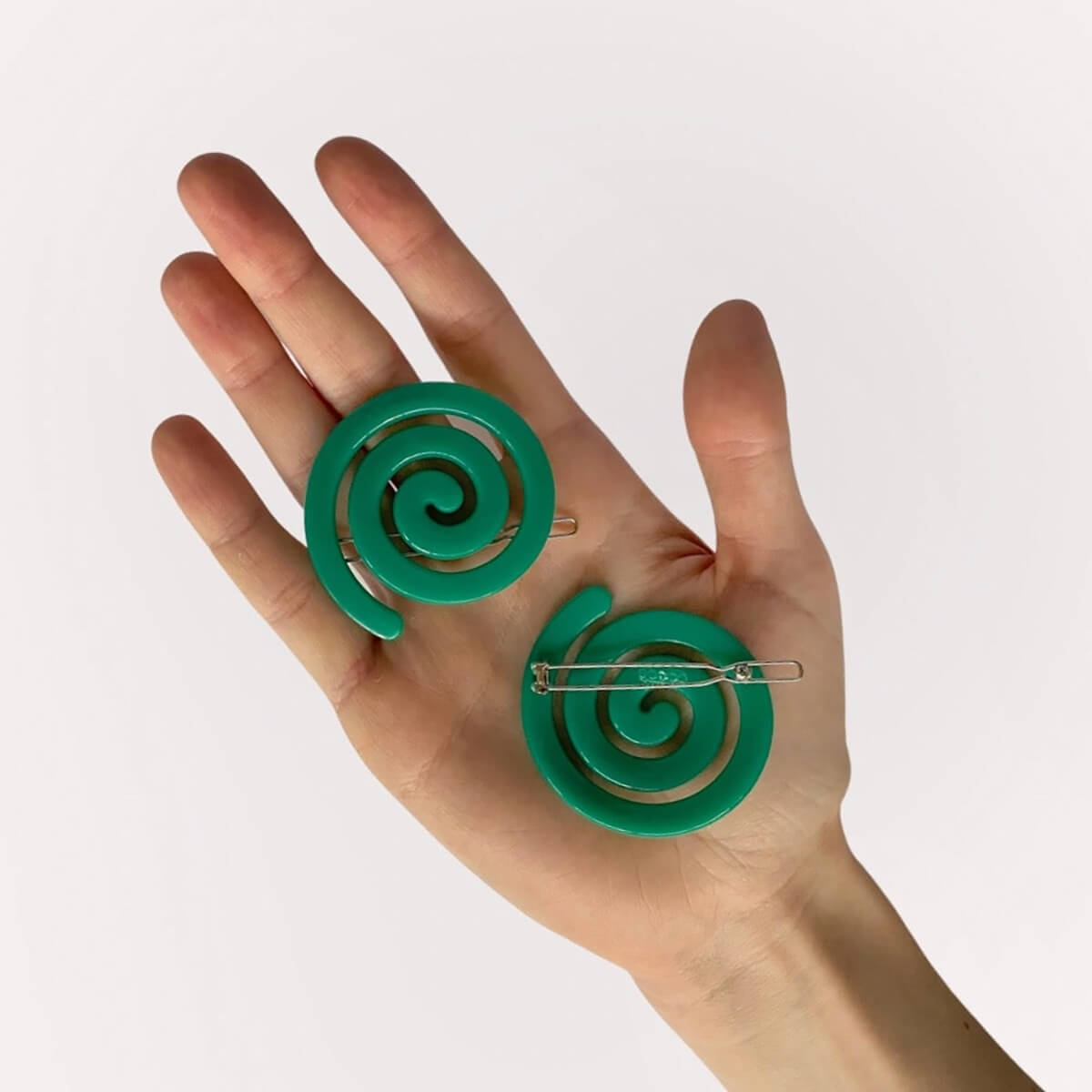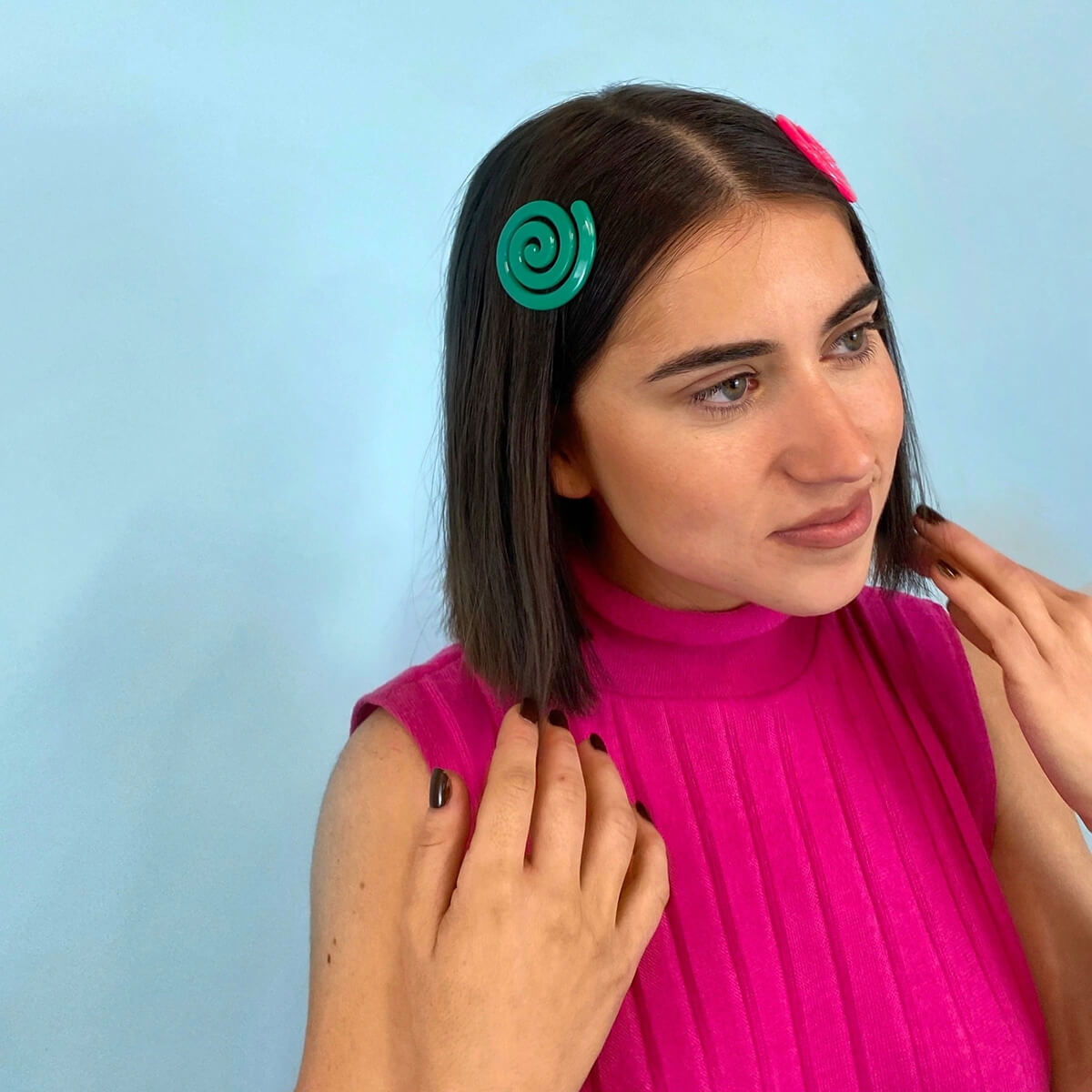Spiral Hair Clip by Chunks. A simple pop of swirl. This ball-and-clasp clip is perfect for all hair types and textures. Perfect for holding back bangs or adding a decorative pop to any hair style.
