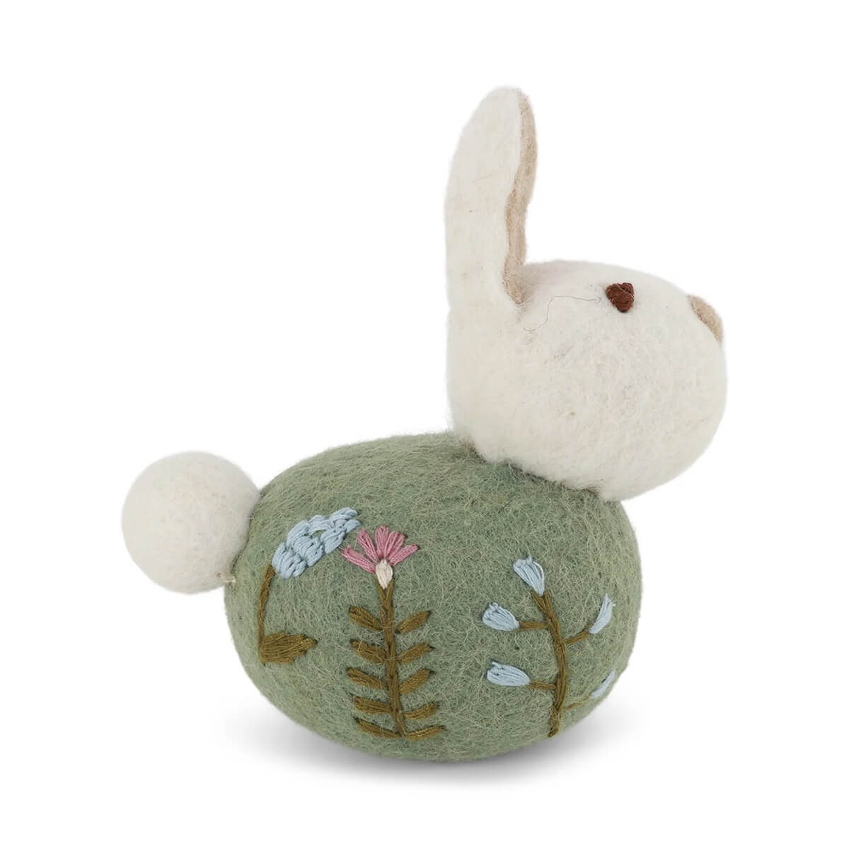 Sitting Bunny With Flower Embroidery Hanging Decoration in Green by Gry & Sif