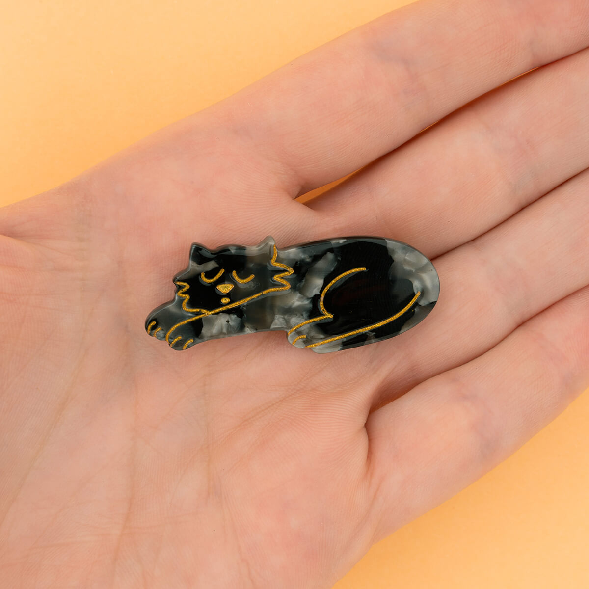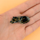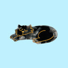 Black cat hair clip by Coucou Suzette. A big black cat taking a nap, but still looking after the style of your hairdo. Even if they’re asleep, they’ll make sure no hair is getting away from their claws! Made from plant-based eco-friendly cellulose acetate set onto a gold-tone crocodile clip.