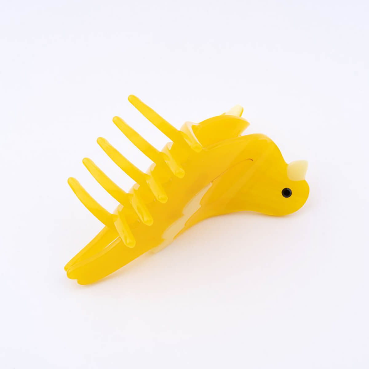Canary hair claw by Coucou Suzette. Full acetate hair claw shaped as a bright yellow canary. We love this tropical hair clip for its vibrant colour and slightly transparent material that will give a boost to any look. Made from plant-based eco-friendly cellulose acetate.