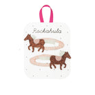Country Horse Hair Clips by Rockahula. These glittery country horses love to gallop free! Sat upon spotty pink grosgrain ribbon wrapped snap clips, they are perfect for any pony and horse fans.