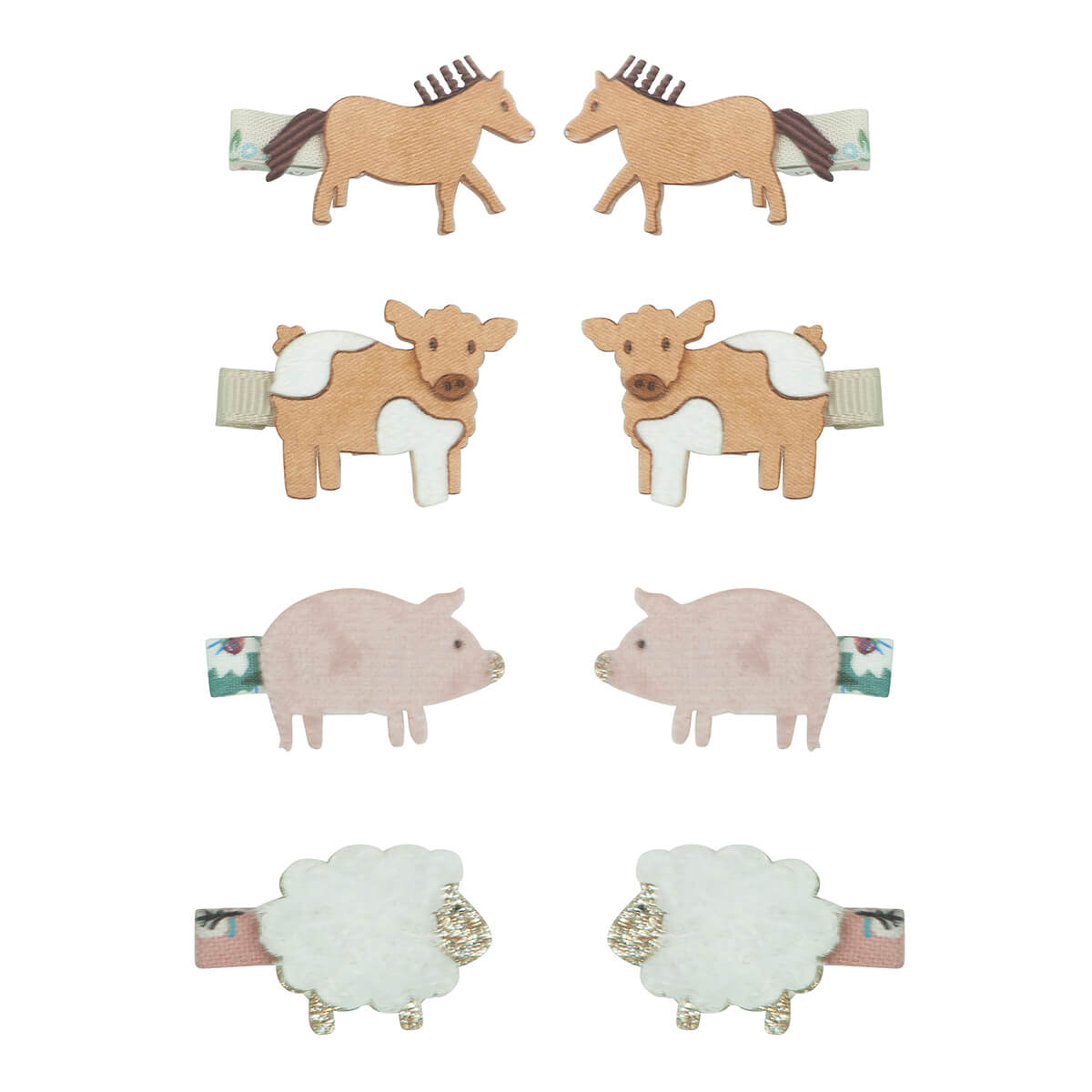 Farm Animal Mini Hair Clips by Mimi & Lula. Down on the farm there's some totally adorable new animals! A pair of gorgeous glittery sheep, pretty pink piggies, some jolly jersey cows and two trotting ponies! A perfect clip pack for little animal lovers.