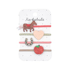 Lucky Pony Ponies by Rockahula. A glittery pony is teamed with a lucky golden horseshoe, a shimmering heart and a juicy red apple to make this horse-some pack of hair bobbles!