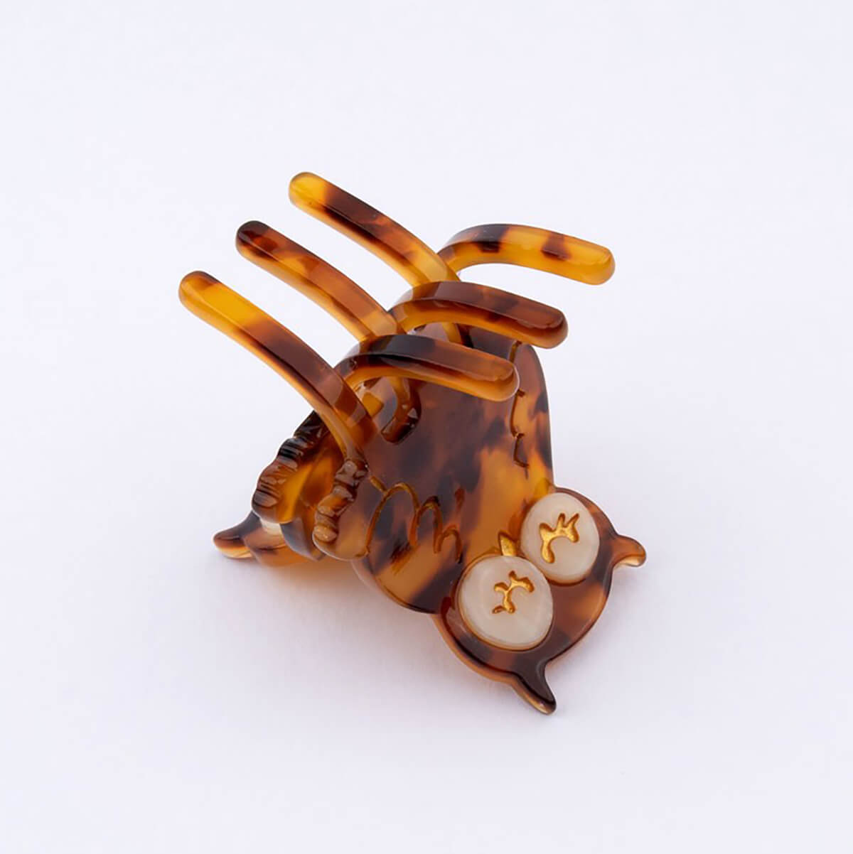 Owl mini hair claw by Coucou Suzette. A cute mini owl-shaped full acetate mini hair claw. We can't resist his little closed eyes and his folded wings, as if caught in a siesta after a hectic night. In brown acetate decorated with golden details, designed for both fine and thick hair to add an original touch to all hairstyles. Made from plant-based eco-friendly cellulose acetate.