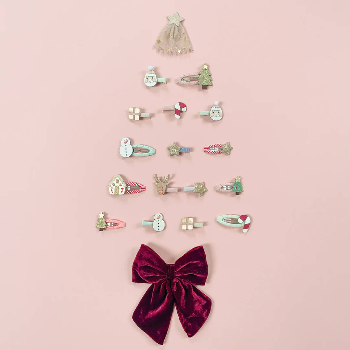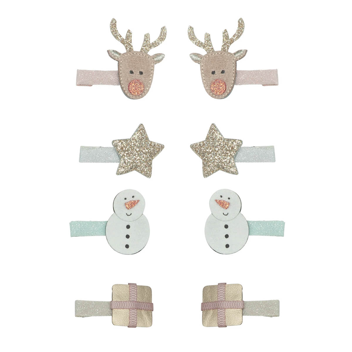 Reindeer Mini Hair Clips by Mimi & Lula. Two totally adorable little reindeers, a pair of jolly cute snowmen, shiny gifts and sparkling stars too!