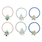 Pack of 6 5cm elastic ponies. Jolly Santa faces, Christmas trees and stars crafted from metallic, plain and glitter fabrics.