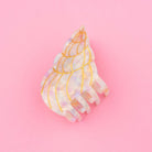 Shell Hair Claw by Coucou Suzette. A gorgeous pearly shell looking like the houses of the hermit crabs. This hair claw dazzles with the pastel highlights and gold shine giving it a vintage look. Each creation is unique, the colour can slightly vary depending on the piece of acetate used. Curved claw with acetate teeth.