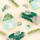 Snowy Town Hair Clip by Coucou Suzette. A pretty house that looks straight out of a fairy tale! This hair clip stands out with its beautiful pearly white, pastel blue and fir green colors. We particularly love the golden details and the snow on the roof which reminds us of the illustrations from our favorite childhood stories.