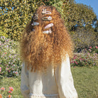 Stripy Bunny hair clips by Rockahula Kids. Hop into style with our adorable Stripy Bunny Ponies. Each tie features a charming bunny face adorned with glittery ears and a sweet daisy in her hair, and is set upon a striped grosgrain ribbon wrapped snap clip.
