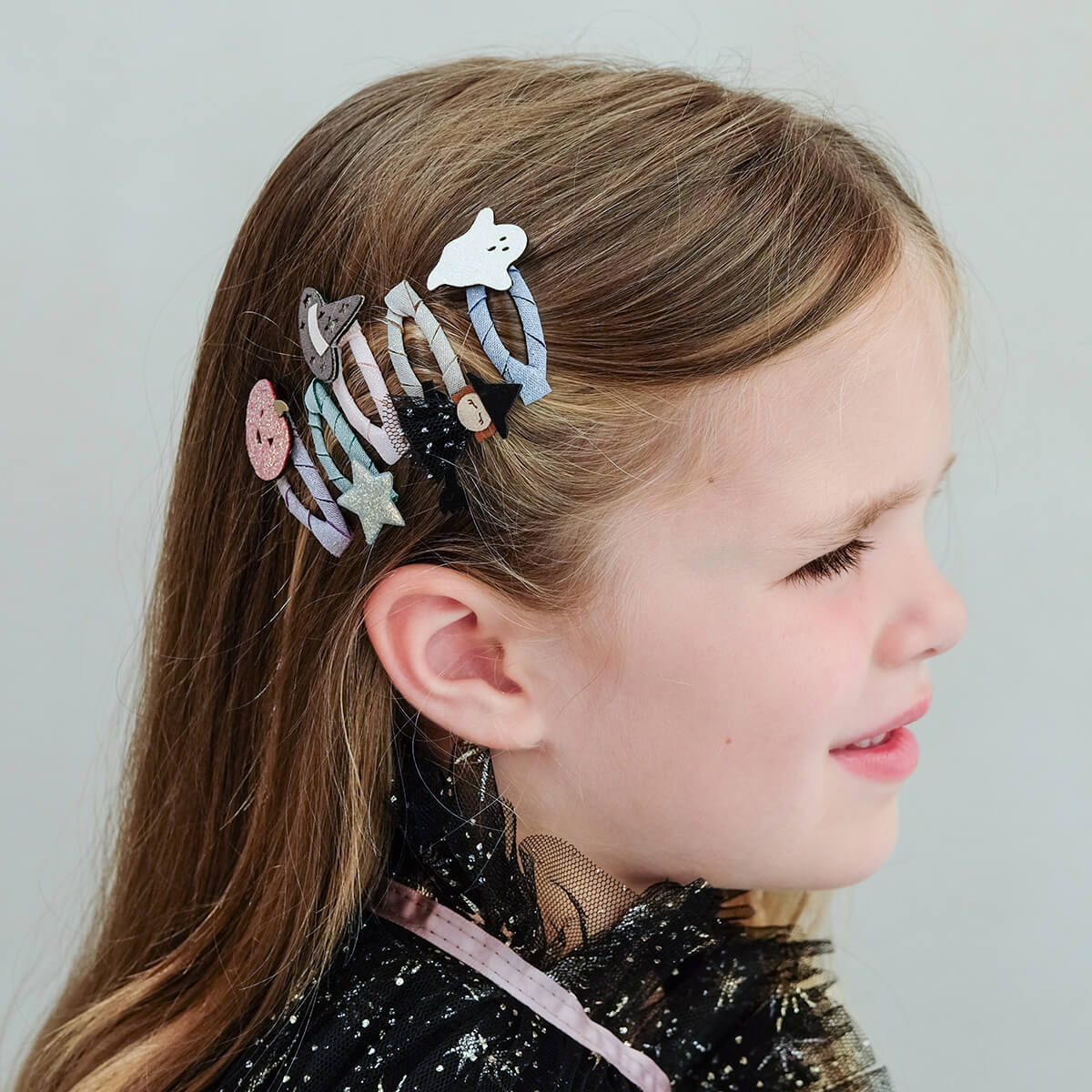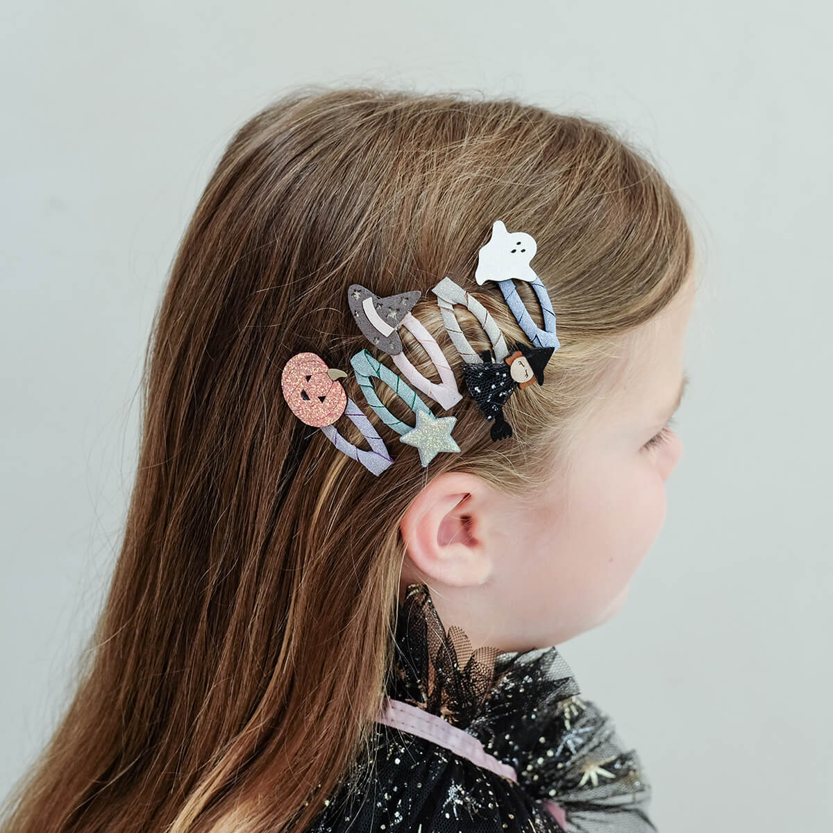 Halloween Mini Hair Clips by Mimi & Lula. Perfectly sized for tiny tresses, these spooky and sparkly mini clic clacs are just the right mix of frightful and delightful for little ones this Halloween!