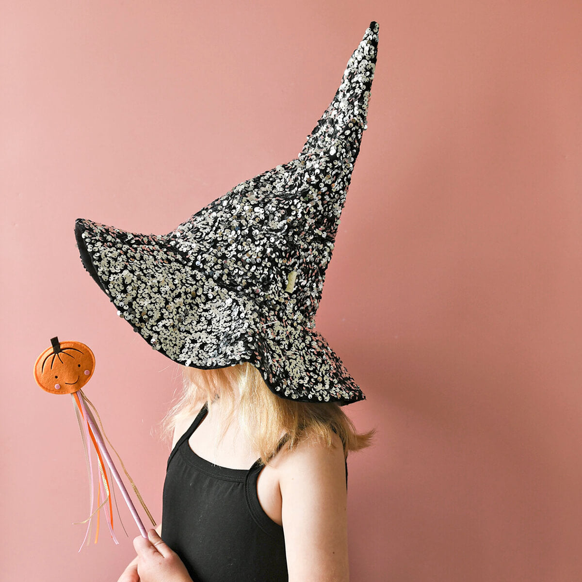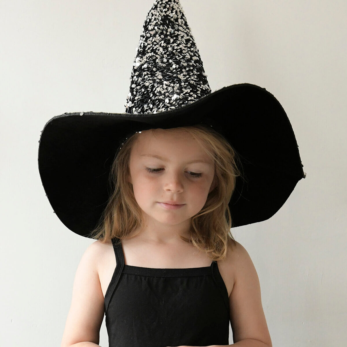 Sequin Velvet Witches Hat by Rockahula. Dress the part this Halloween, and be ready to conjure spells, charms and enchantments with this stunning sequinned witches hat! Made with super soft velvet, and adorned with shimmering sequins, you'll be the sparkliest little witch in town!