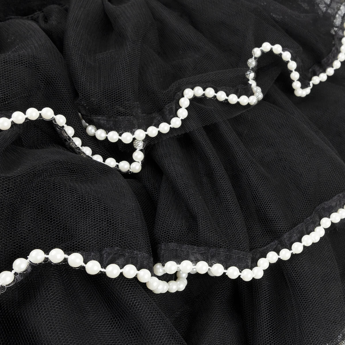 The skirt is made with 3 layers of black tulle, with a polycotton lining, and 3 layers of white faux pearl trim. A black velvet elastic waistband is stylish and comfy. The black velvet fabric stuffed tail has snap fasteners and is easily detachable. Flexible metal headband for comfortable wear. The bow headband is covered with soft black velvet and has a white faux pearl trim. It works both as cat ears or can be worn as a fun, stylish accessory once Halloween is over.Suitable for ages 3-6 years.